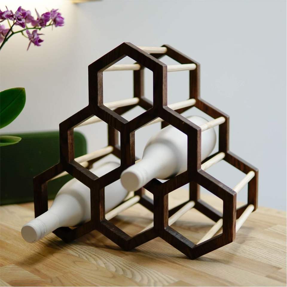 Porte-bouteilles moderne en métal doré avec base en bois, support de comptoir pour 6 bouteilles, présentoir pour la décoration de la maison, de la cuisine, du bar, étagère de rangement