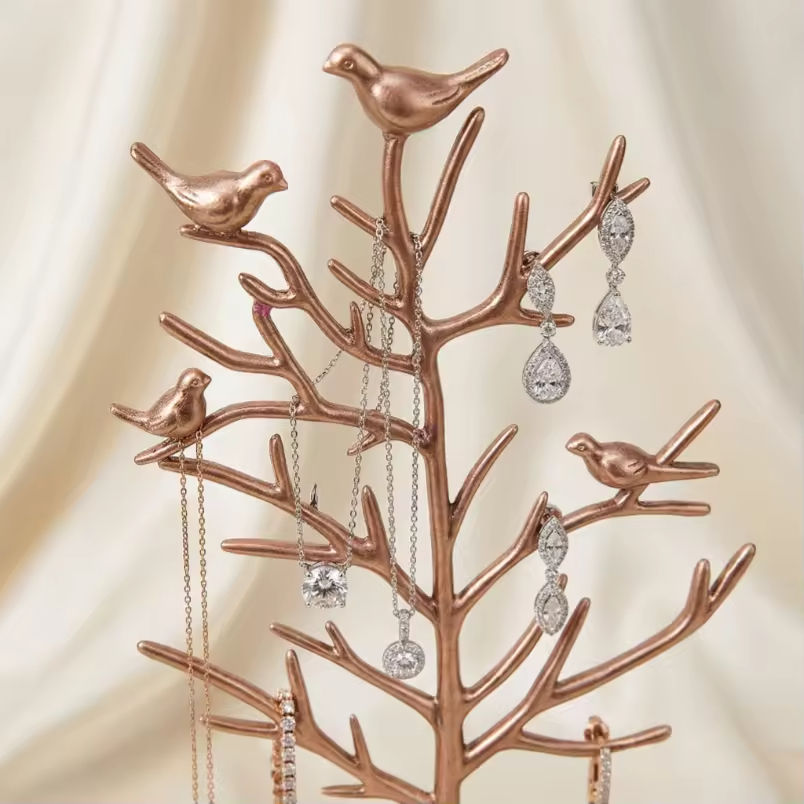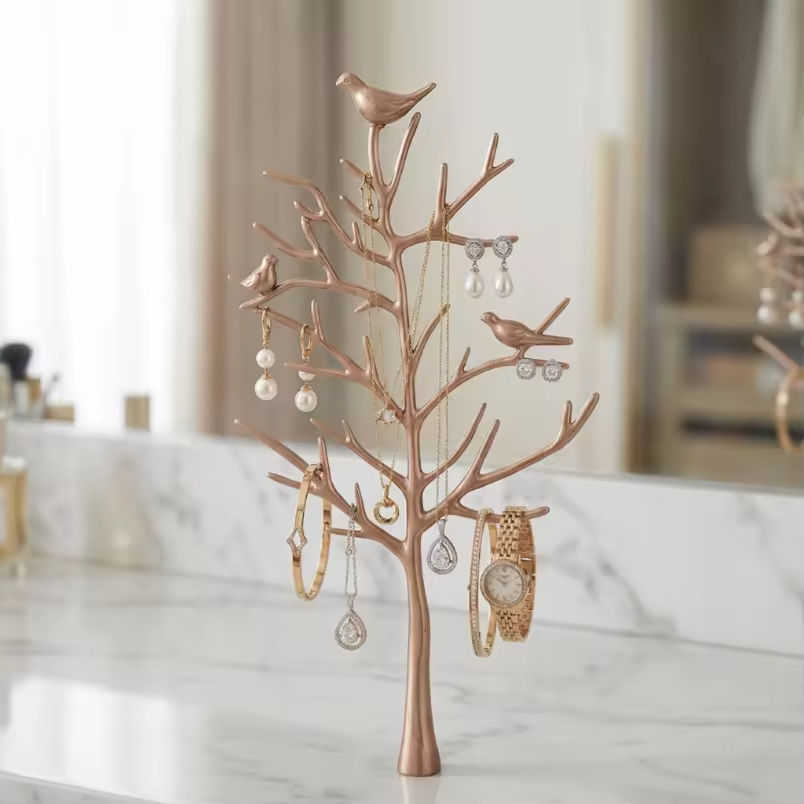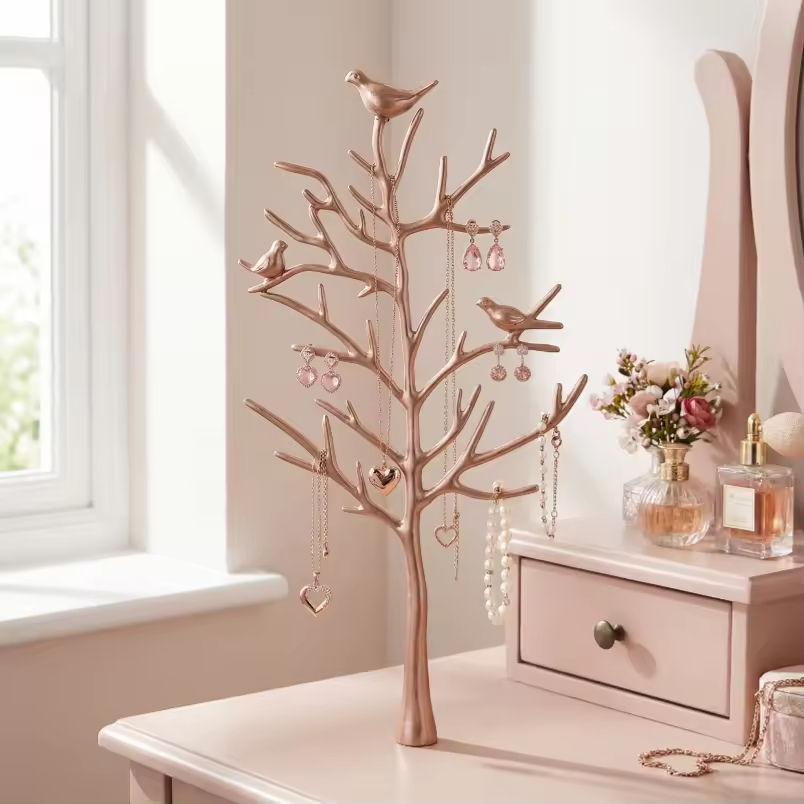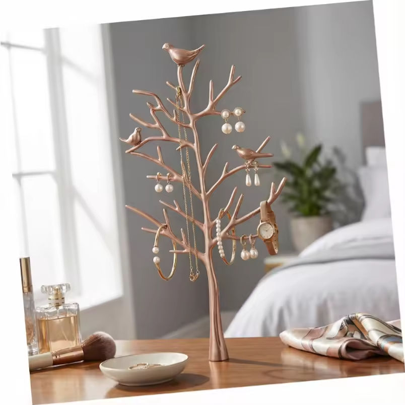 Présentoir à bijoux moderne en métal suspendu, support pour boucles d'oreilles, organisateur de colliers et bracelets avec plateau à bagues