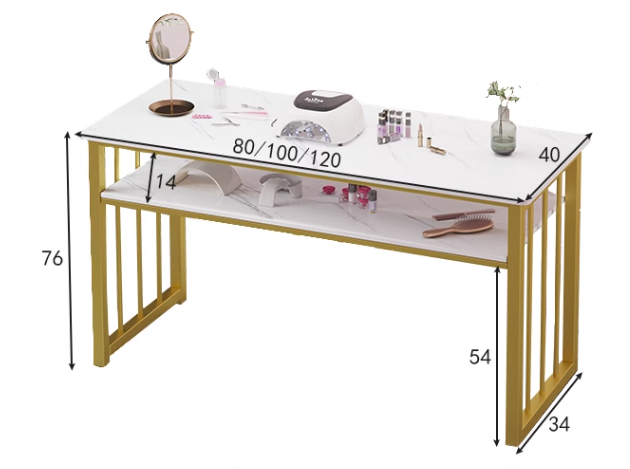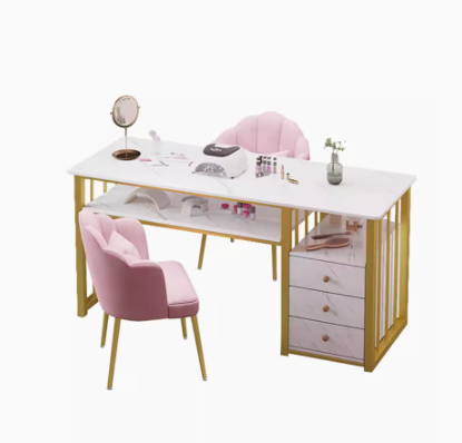 Table de manucure moderne en métal léger de luxe Table de manucure double en panneau de densité de prix spécial