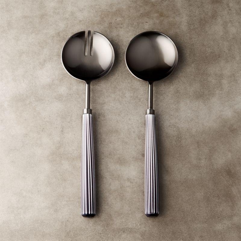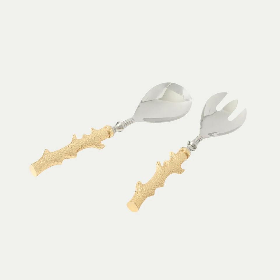 Ensemble de service à salade en métal moderne avec poignée en laiton, ustensile de service design pour la salle à manger, accessoire élégant pour la maison