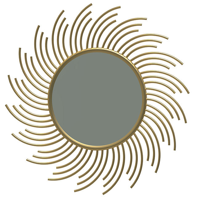 Modern Metal Sunflower Design Decorative Hanging Wall Mounted Mirror Sculpture For Living Room Foyer Room Entryway Washbasin
