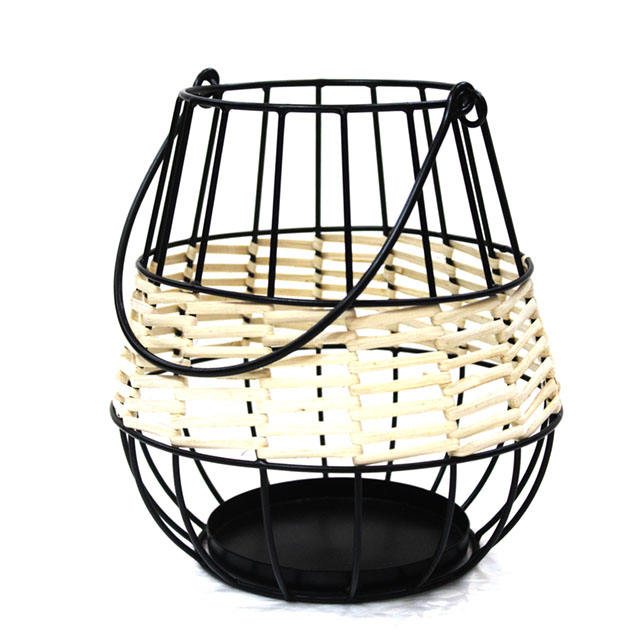Panier de rangement moderne en métal et rotin avec poignée-Panier décoratif en fil métallique tissé pour l'organisation et l'affichage de la maison