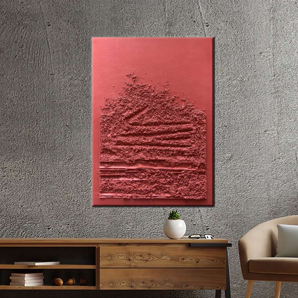 Tableau sur toile imprimé abstrait moderne minimaliste rouge terre cuite, encadré style galerie