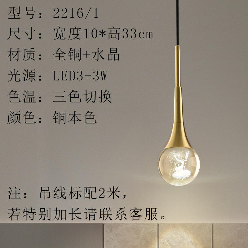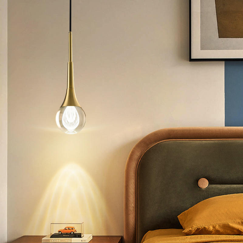 Luminaire suspendu en cristal tout en cuivre minimaliste moderne, petite lampe de luxe, long fil suspendu pour chambre à coucher, lampe suspendue de chevet