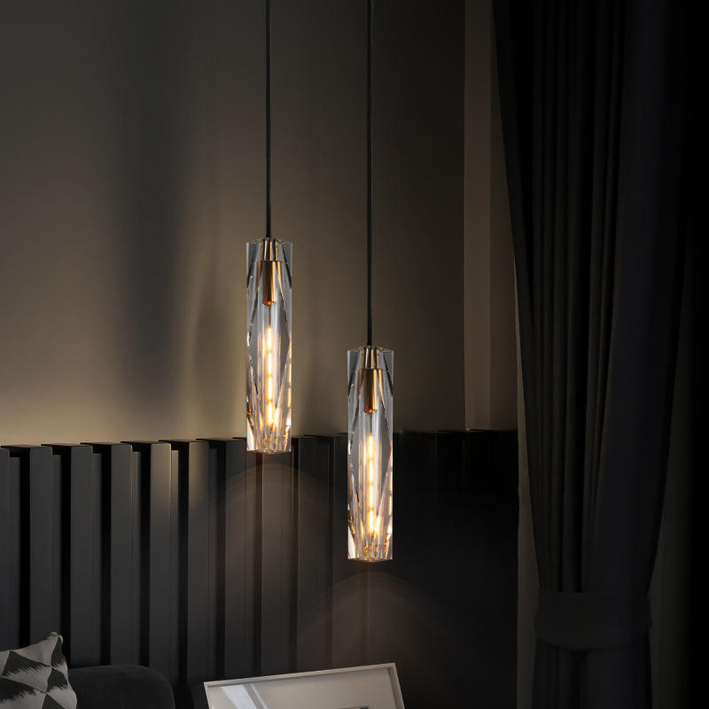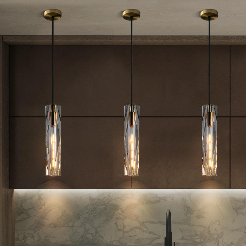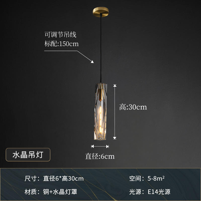 Luminaire suspendu moderne minimaliste tout en cuivre, lampe de chevet de luxe en cristal pour chambre à coucher, lustre créatif suspendu en fil métallique