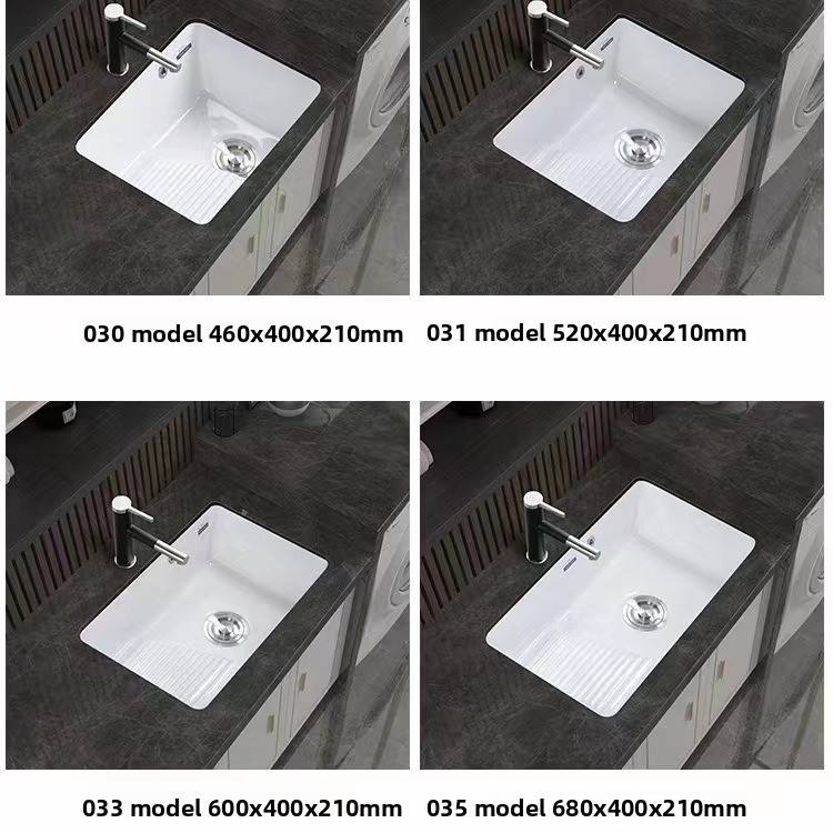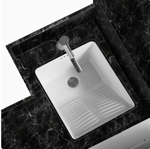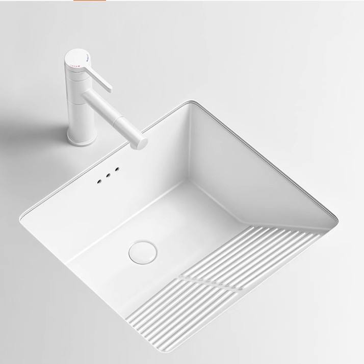 Plan de lavage en céramique encastré moderne et minimaliste pour salle de bain avec vasque intégrée et lavabo