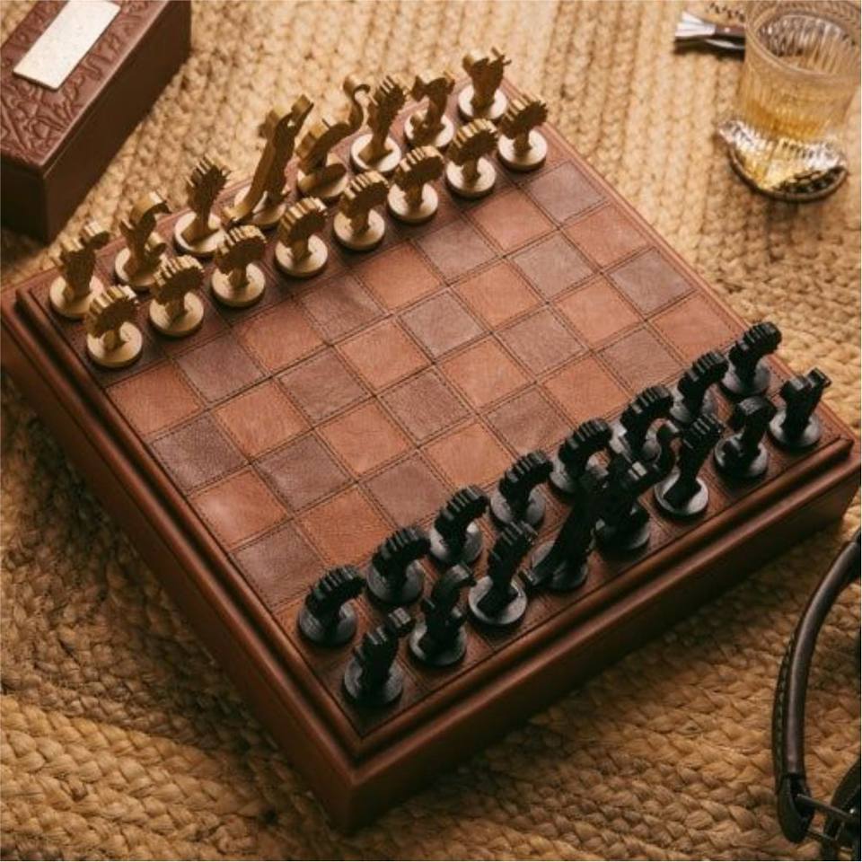 Jeu d'échecs moderne et minimaliste, fait main, avec étui de rangement en similicuir, pièces en résine lestées, jeu d'échecs décoratif de table haut de gamme en cuir
