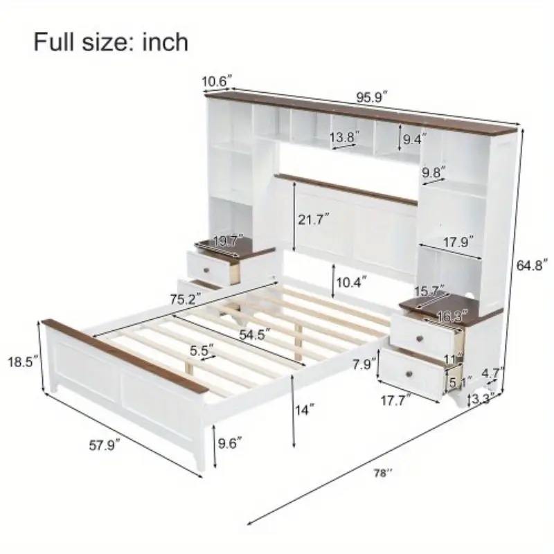 Cadre de lit plateforme blanc pleine grandeur avec 2 tables de chevet et étagère de rangement pour chambre à coucher et appartement