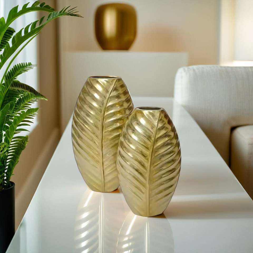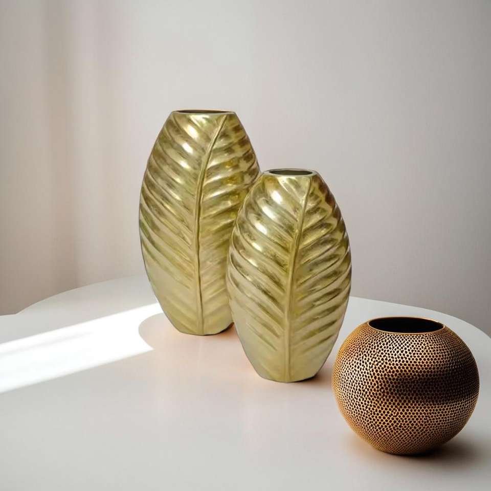 Vase à fleurs en métal aluminium design feuille minimaliste moderne