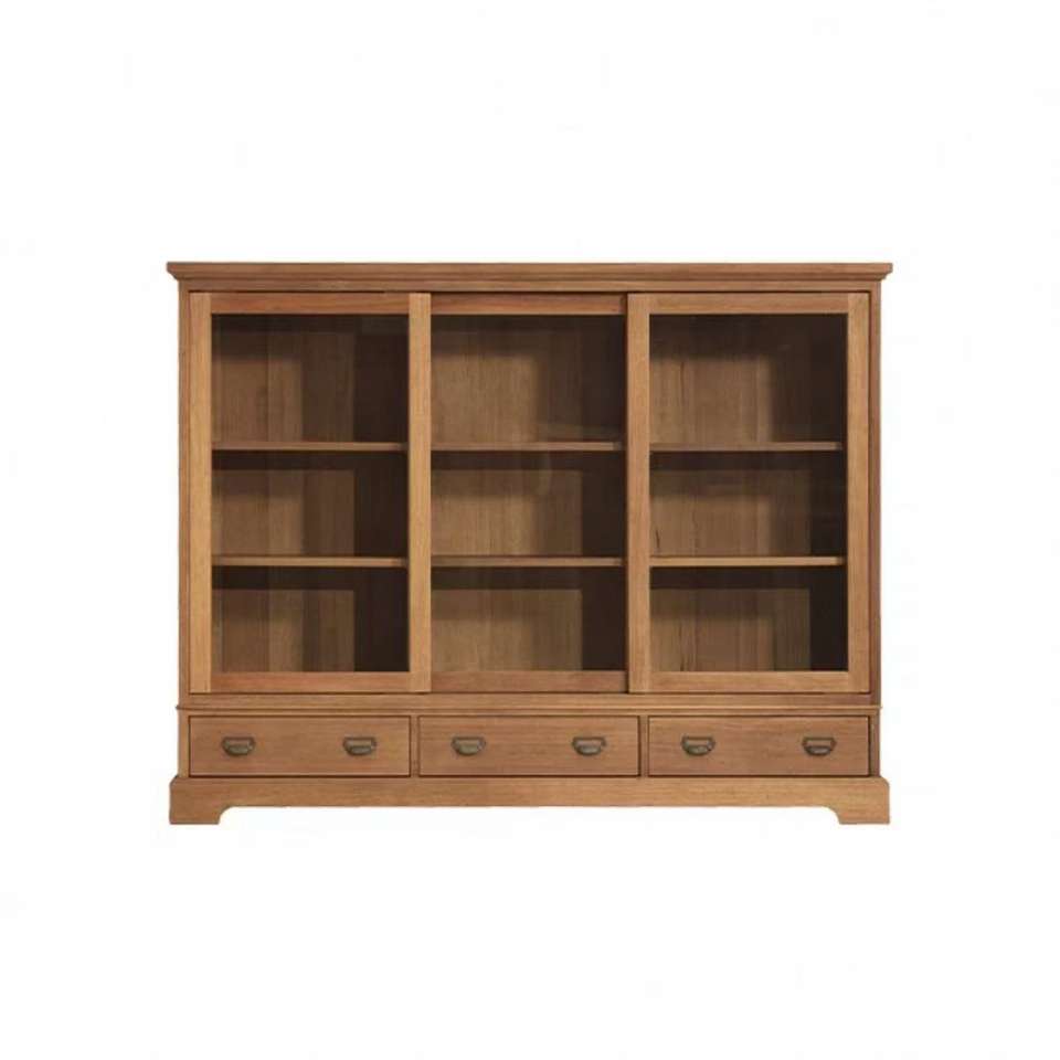 Meuble de rangement moderne et minimaliste pour salon avec 2 portes vitrées et 3 tiroirs, meuble gain de place pour la maison