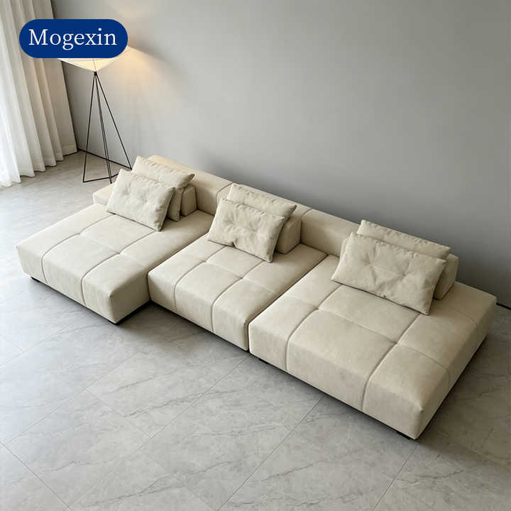 Canapé modulaire carré minimaliste moderne en cuir véritable capitonné pour salon avec coussins amovibles