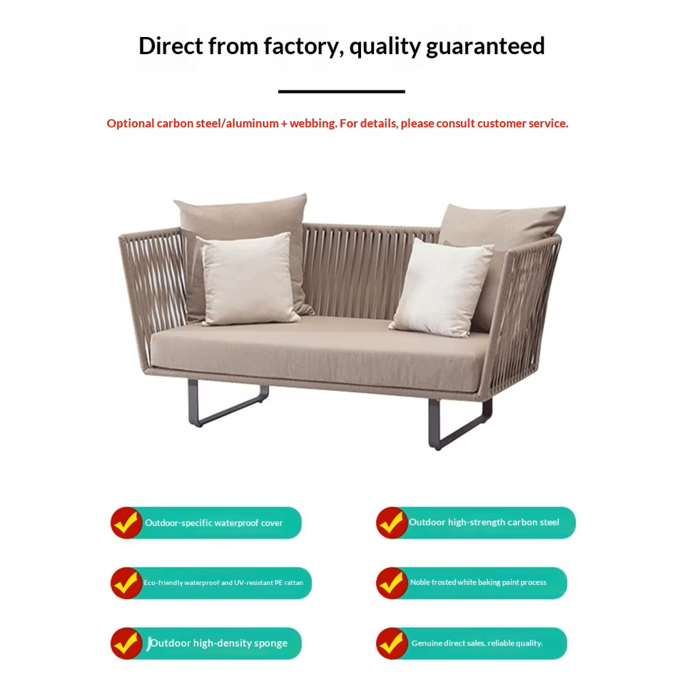 Canapé en rotin minimaliste moderne pour l'extérieur - Imperméable et résistant au soleil ; Idéal pour les cours, les jardins et les balcons.