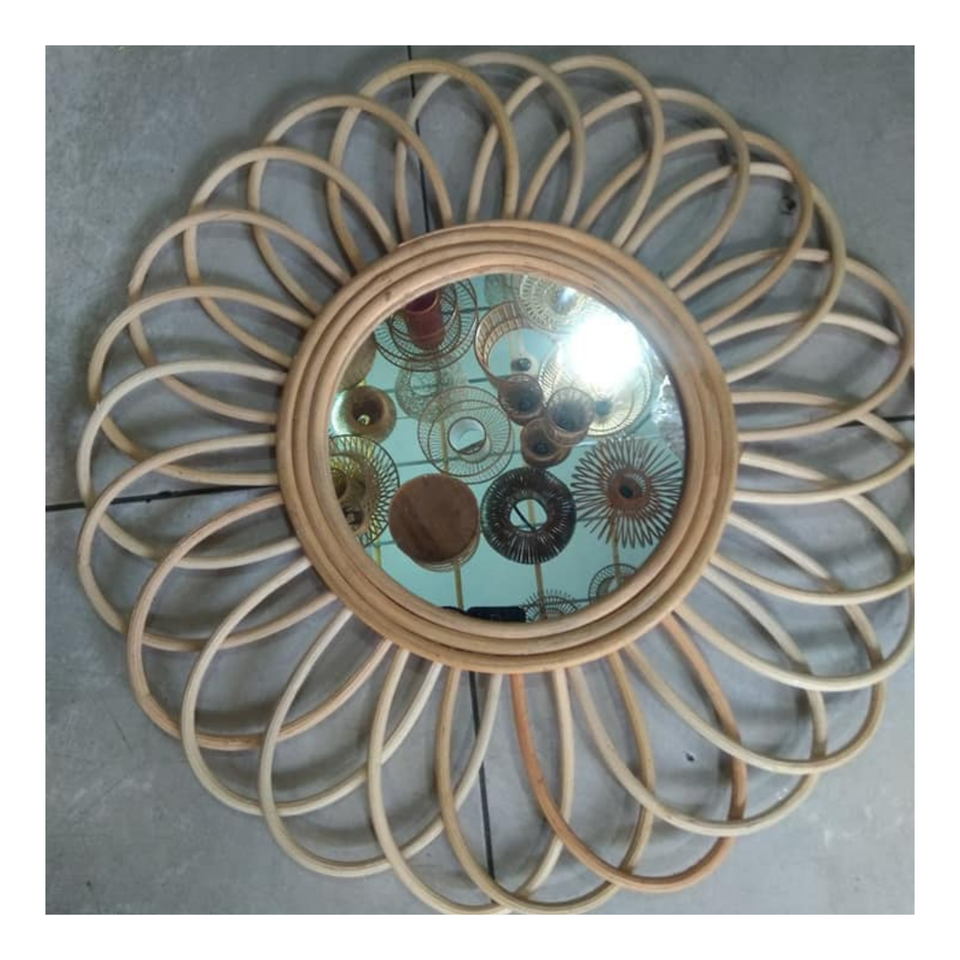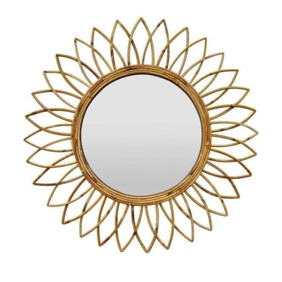 Miroir mural minimaliste moderne en rotin cadre rond naturel fait à la main pour chambre à coucher, salon, salle de bain, décoration d'intérieur Boho Chic