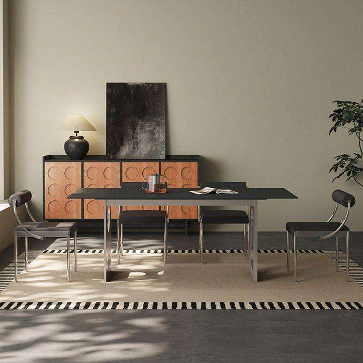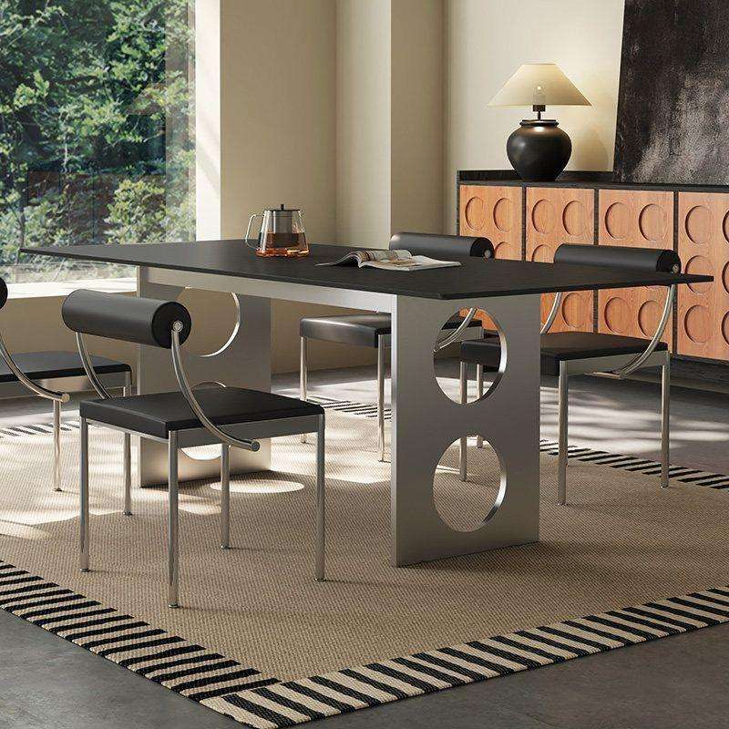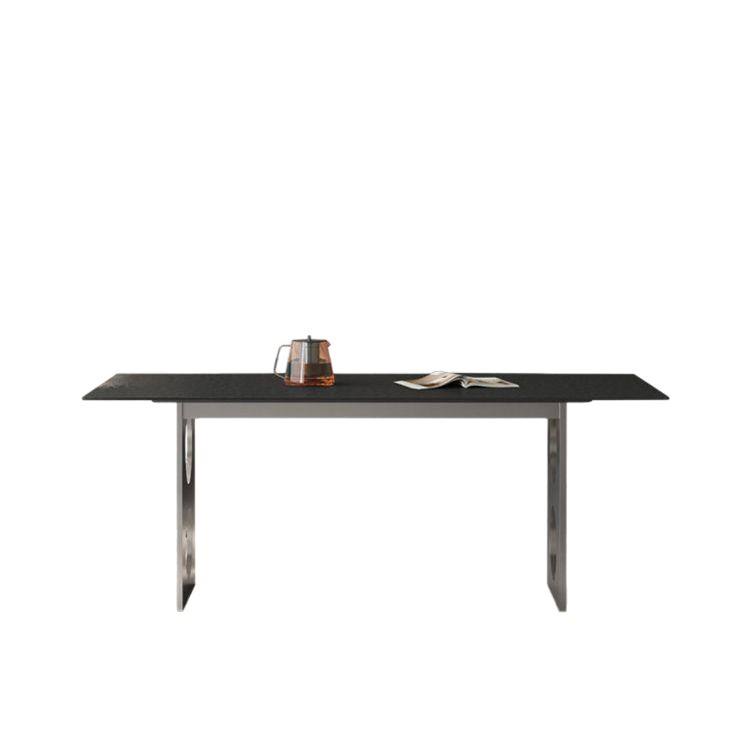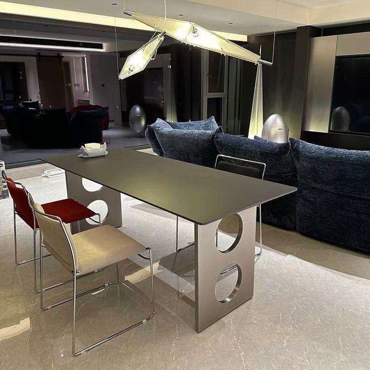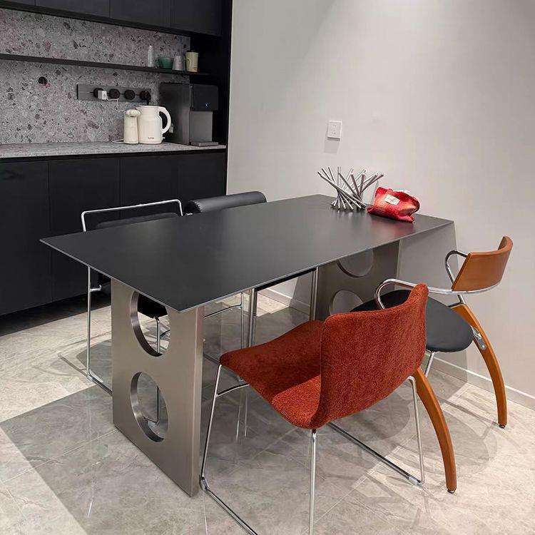 Table à manger rectangulaire minimaliste moderne en acier inoxydable avec plateau en pierre pour petit appartement