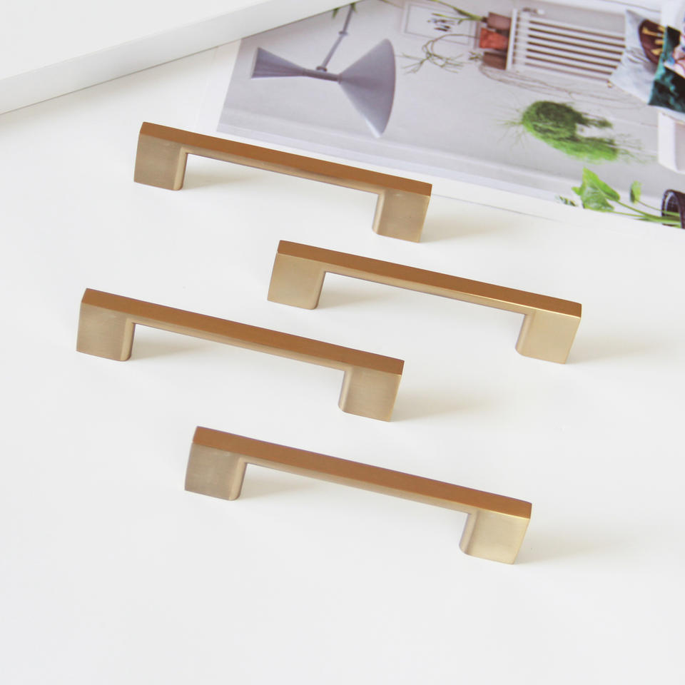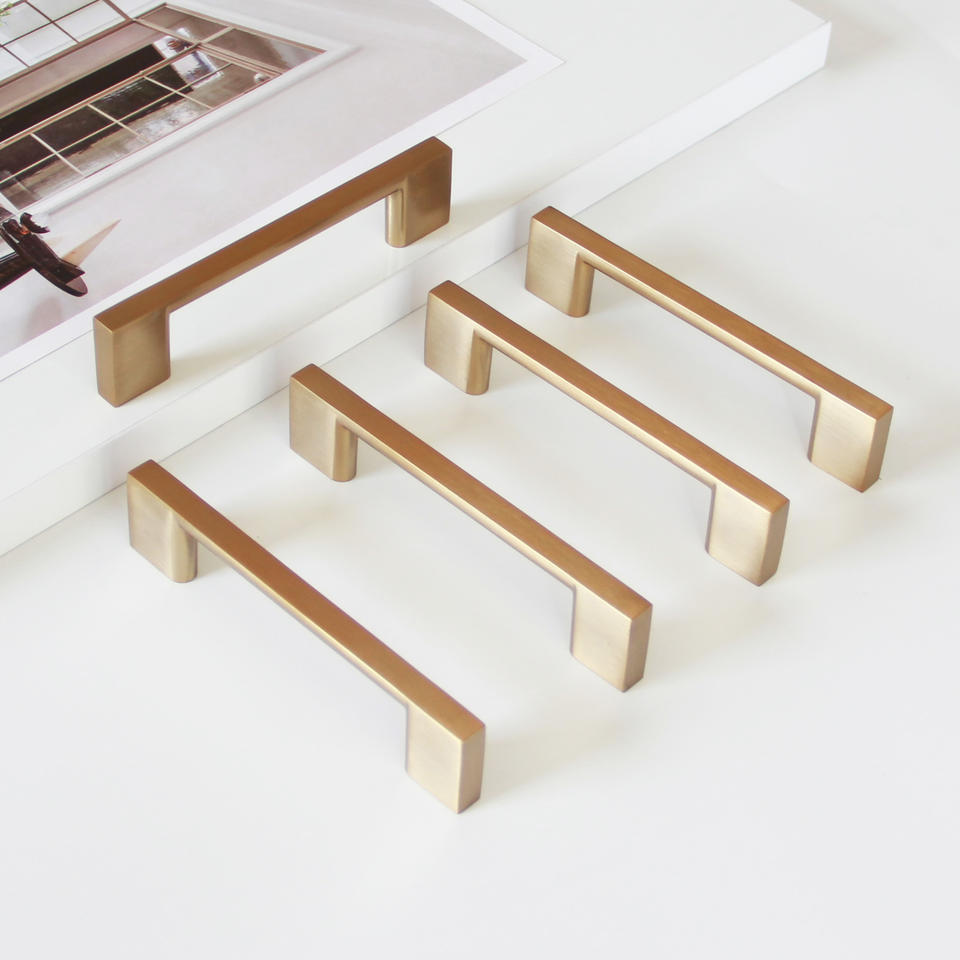 Poignée de meuble rectangulaire moderne et minimaliste en alliage de zinc, finition champagne, pour cuisine, salle à manger, armoire, commode, salle de bain