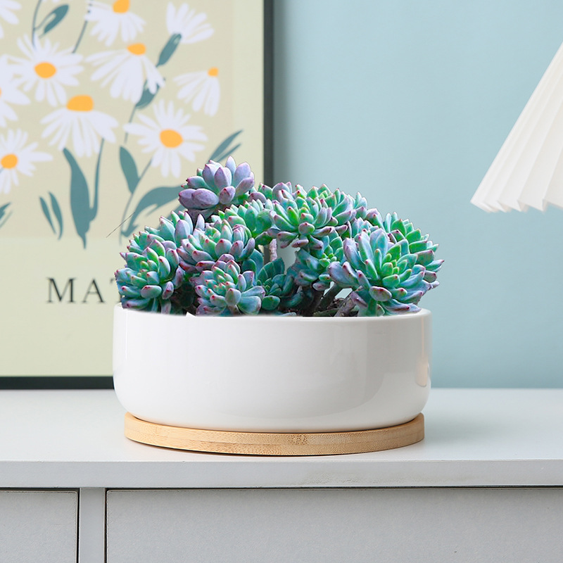 Pot de fleurs rond en céramique minimaliste moderne, grande taille, blanc, pour plantes vertes, bonsaï, avec trou de drainage, pour la maison, le bureau ou le jardin