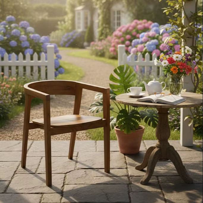Modern Minimalist 3D Printed Solid Wood Farmhouse Outdoor Dining Chair with Curved Backrest Wooden Armrests for Warehouse Use