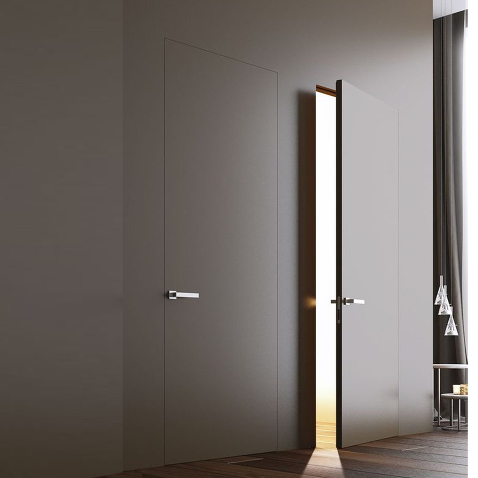 Portes encastrées sans cadre en bois massif, style minimaliste moderne, avec surface finie pour l'intérieur de villa