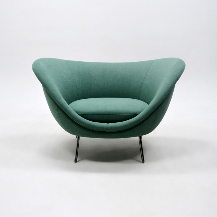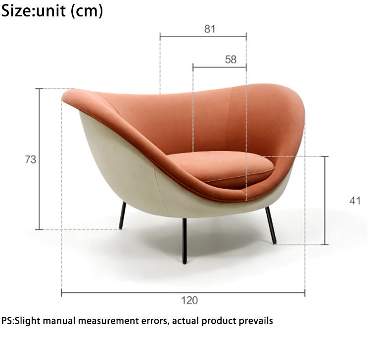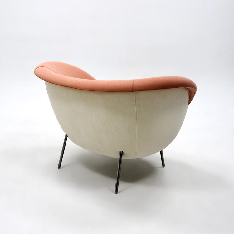 Fauteuil lounge moderne minimaliste bicolore en velours écologique avec coque incurvée et pieds en métal pour salon, chambre et hall d'hôtel