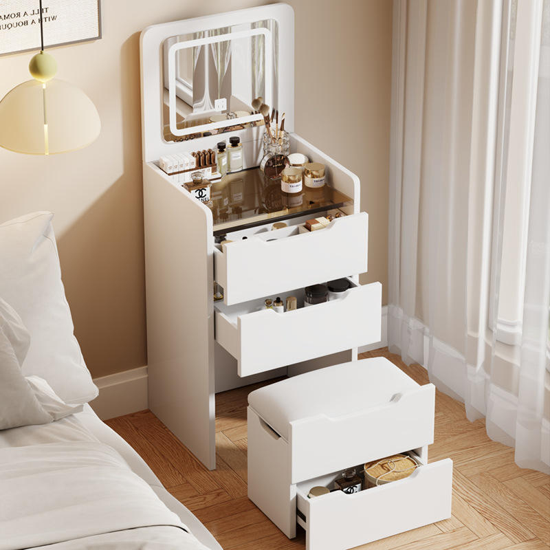 Table de toilette minimaliste moderne avec miroir et tabouret Coiffeuse blanche pour chambre à coucher