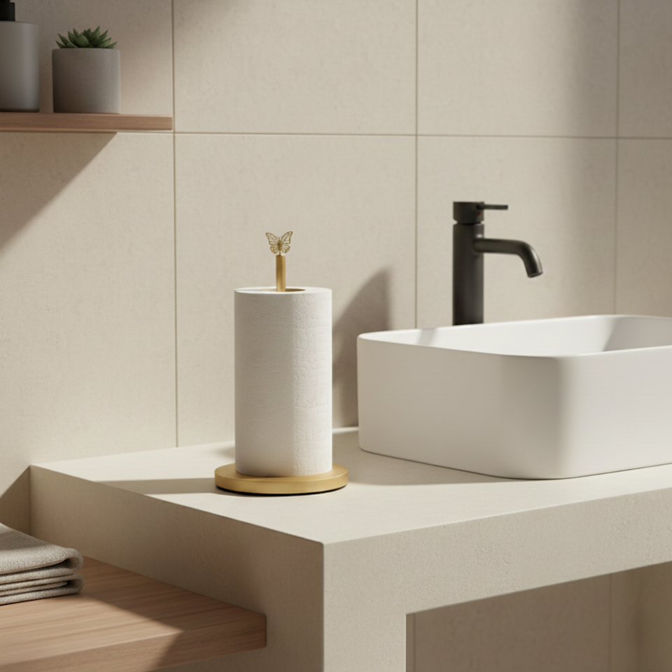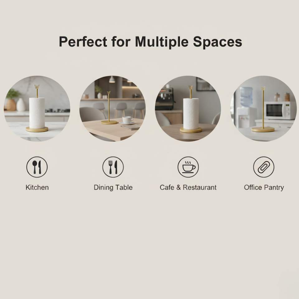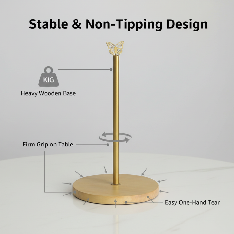 Porte-mouchoirs en métal robuste avec base en bois massif, design stable anti-bascule, facile à déchirer d'une seule main, support de papier pour comptoir de cuisine