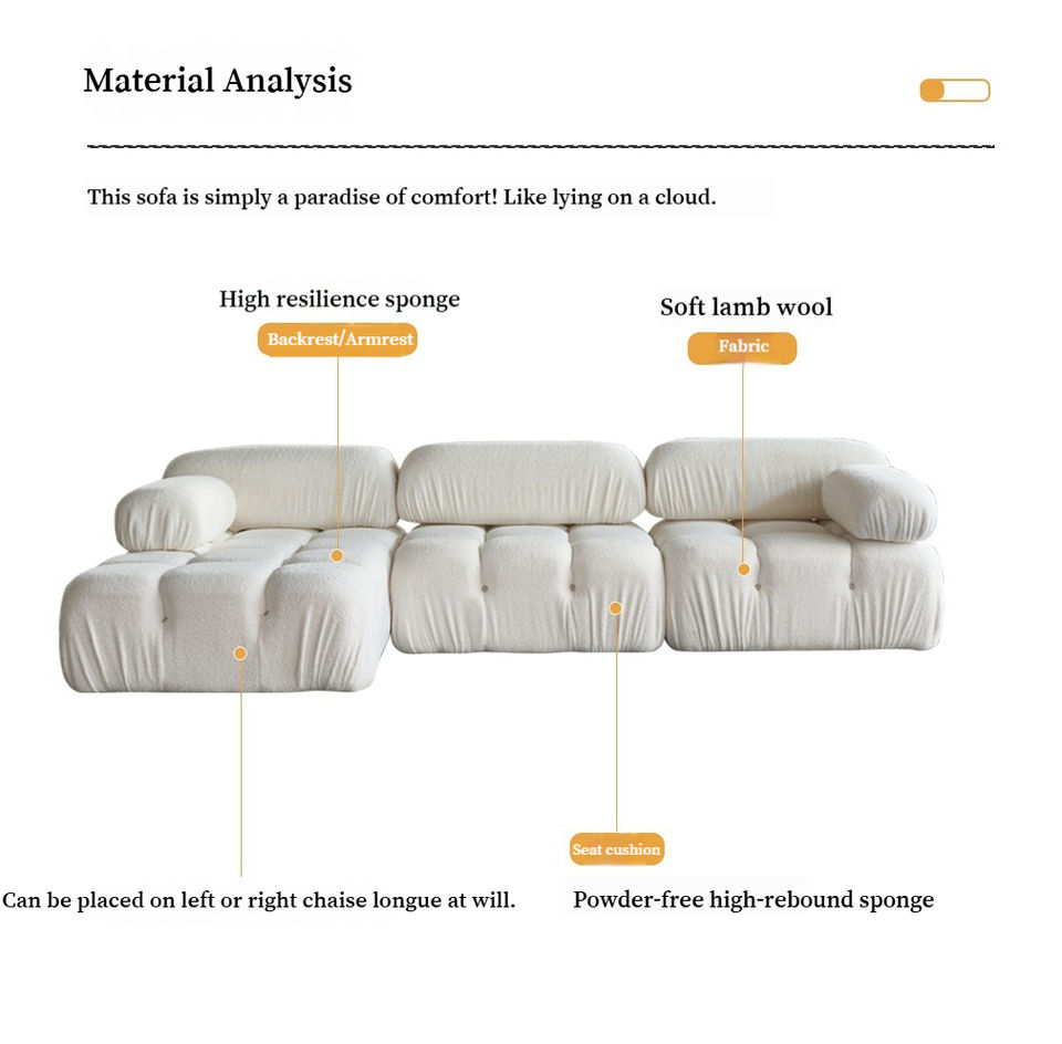 Canapé modulaire moderne en tissu avec rembourrage en éponge et design tufté Canapé combiné paresseux pour le salon et l'appartement
