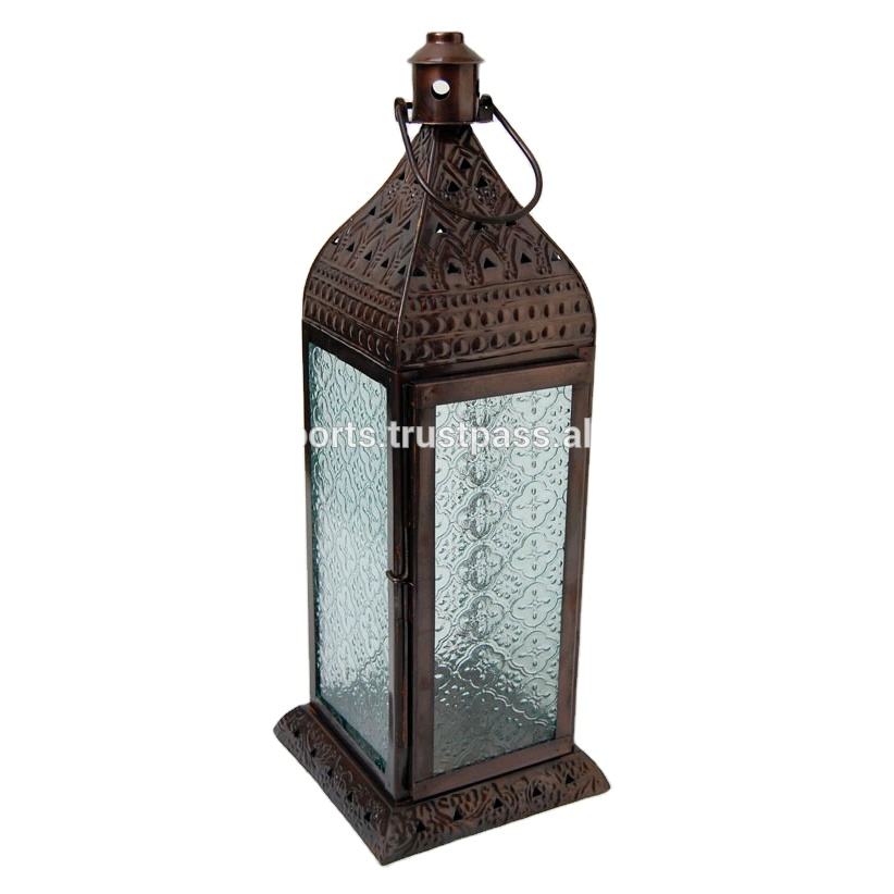 Lanterne marocaine moderne à bougie, lanterne de bougie avec finition en cuivre Antique, verre blanc et fer de qualité supérieure, lumens