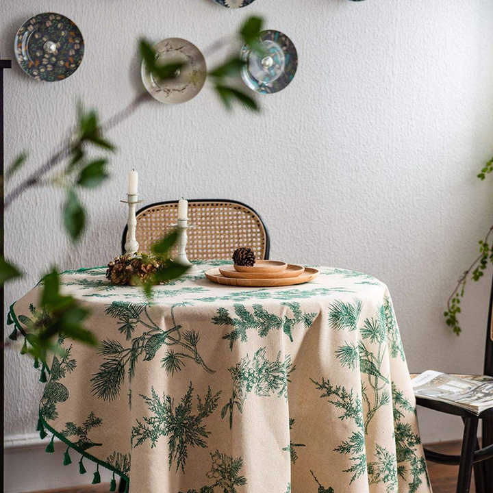 Modern Moroccan Style Round Tablecloth Woven Crochet with Tassel Trim Reusable for Home Bar Party Wedding Banquet
