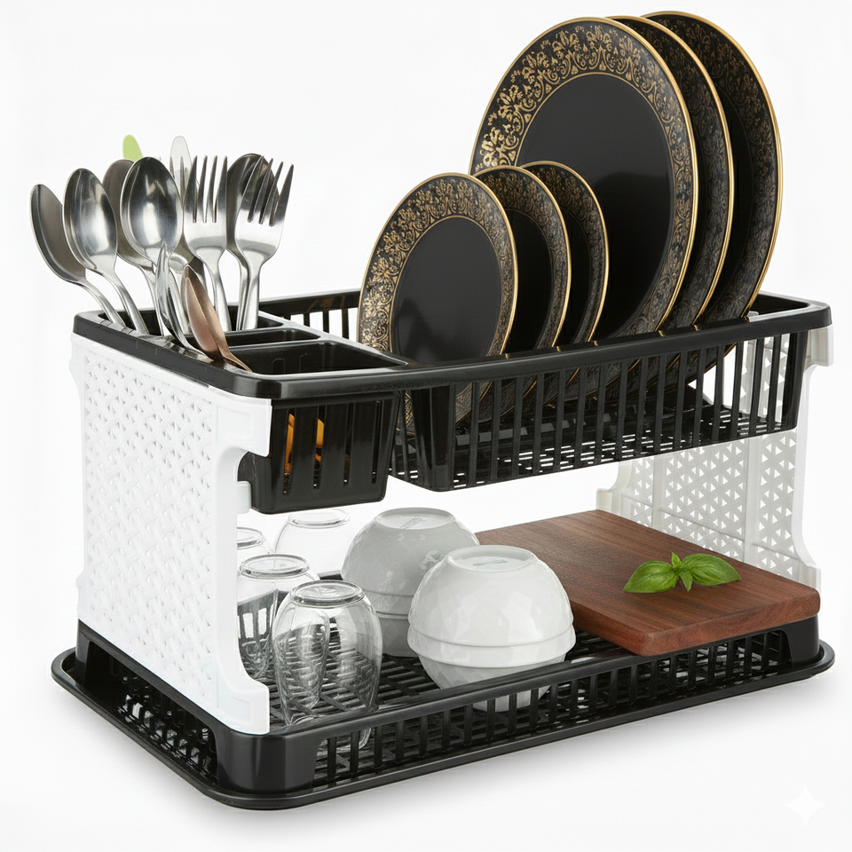 Modern Multi-Function Dish Drainer Rack – Large Capacity Kitchen Organizer with Cutlery & Cup Holders