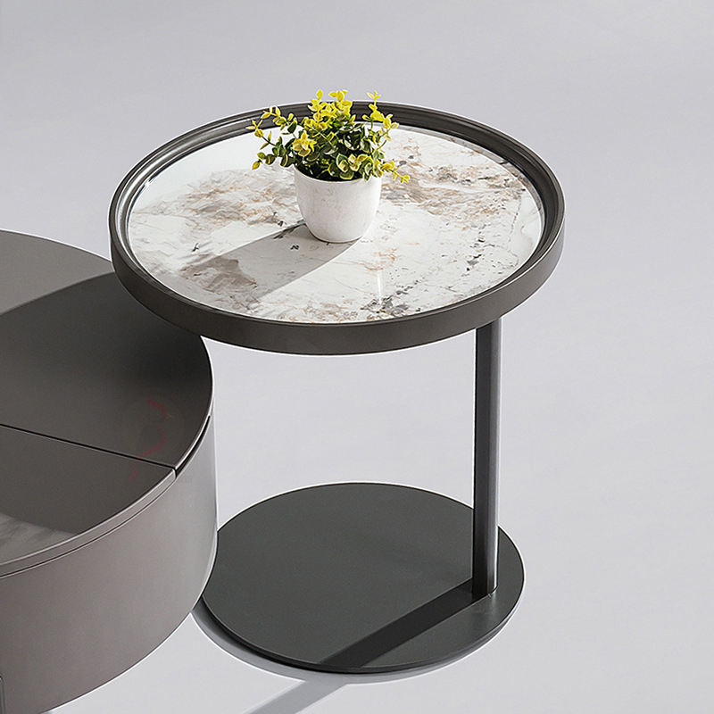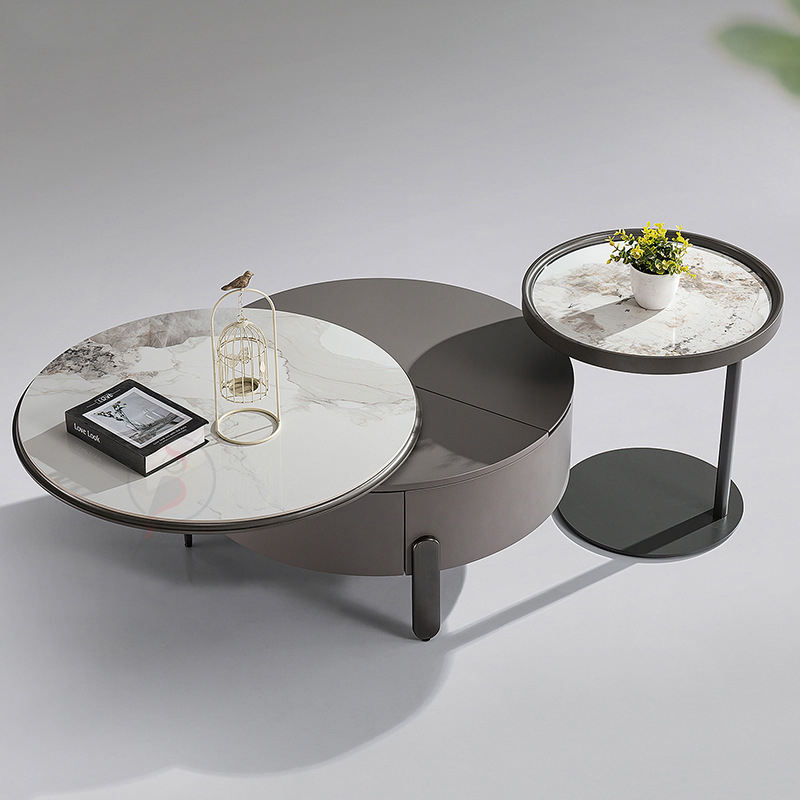 Ensemble de table basse ronde imbriquée rotative multifonctionnelle moderne Table basse et table d'appoint en ardoise et pierre de marbre lot de 2