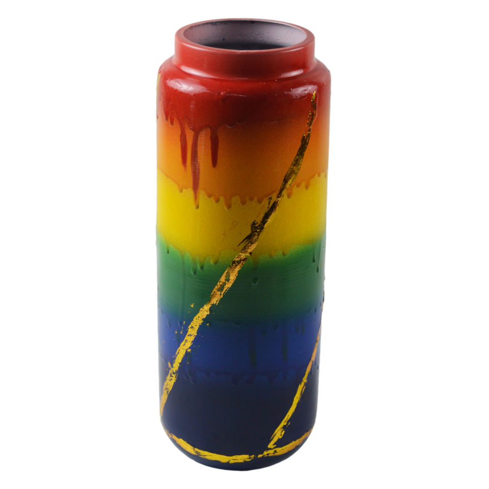 Vase en métal arc-en-ciel à motif floral, design moderne avec plusieurs finitions, thème LGBTQ, pour la décoration de bureau et de salon