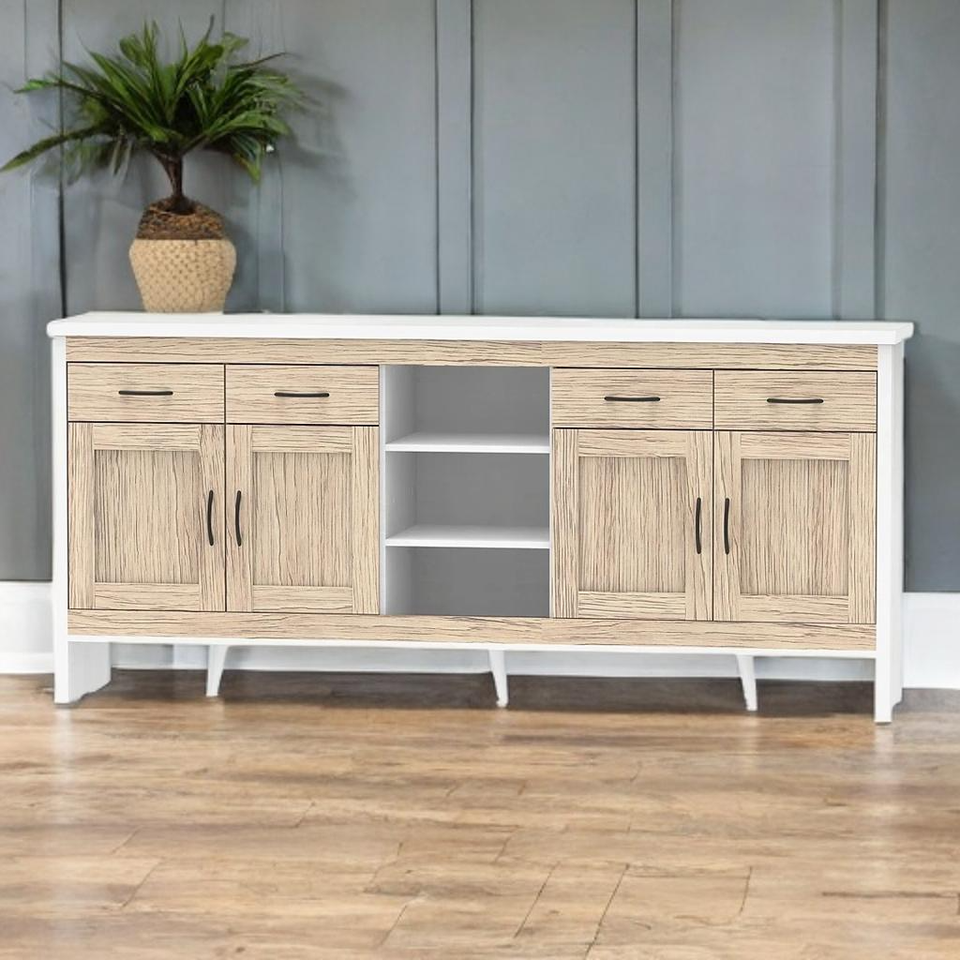 Étagères de table de buffet en bois polyvalentes modernes à 2 portes et 3 tiroirs pour meubles de maison, salon, cuisine, style panneau de fabrication malaisienne