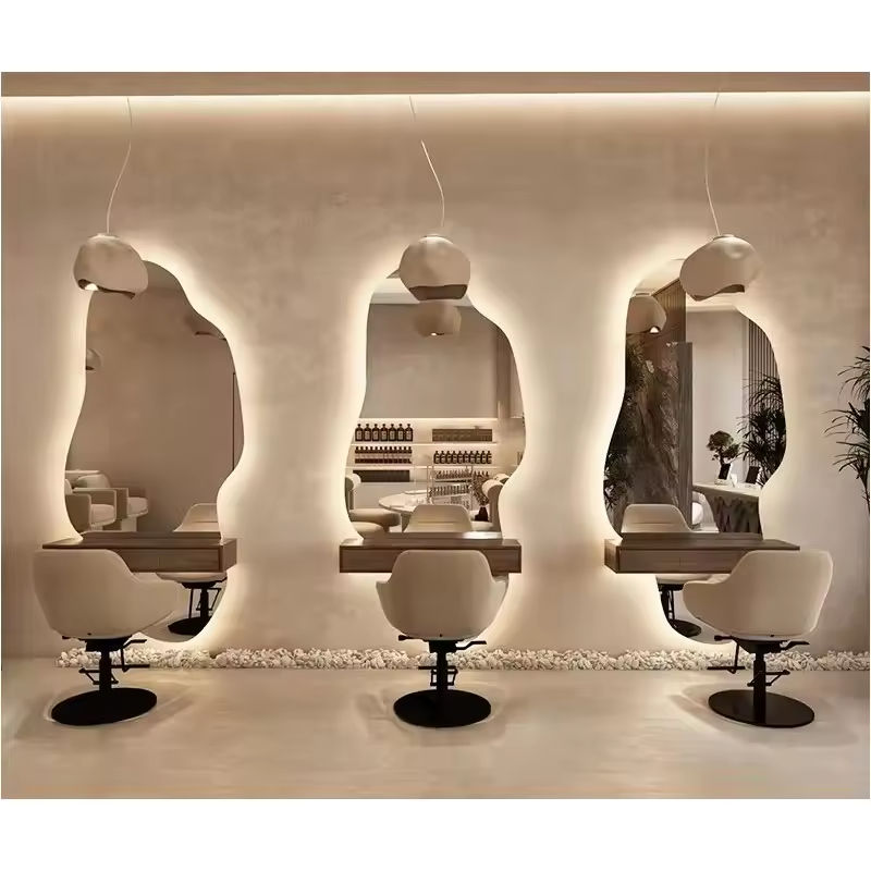 Station de manucure moderne sur mesure avec table et miroir – Solution complète pour l'ameublement et la décoration de salon de manucure