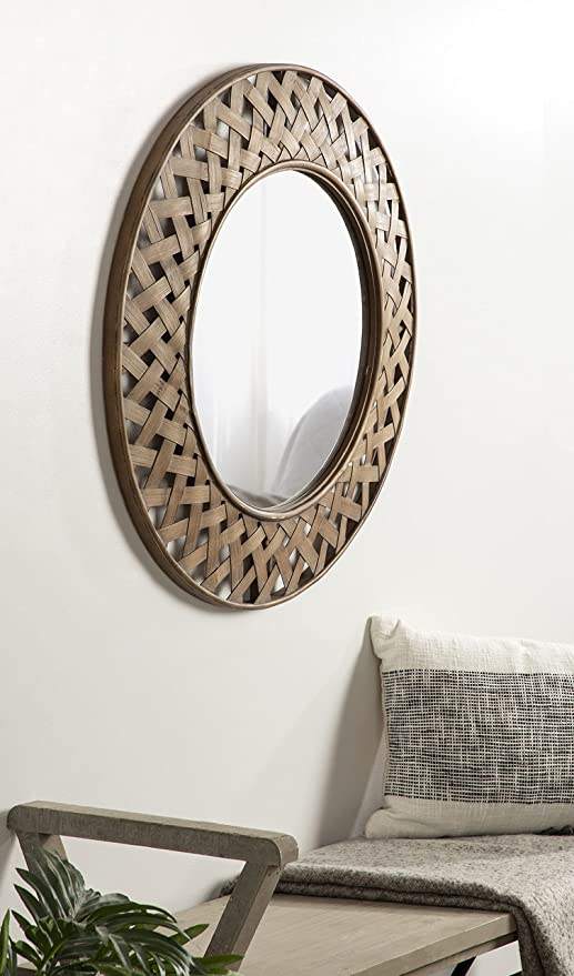 Miroir mural moderne en rotin naturel avec finition naturelle, parfait pour la décoration murale et le design élégants de la maison et du restaurant