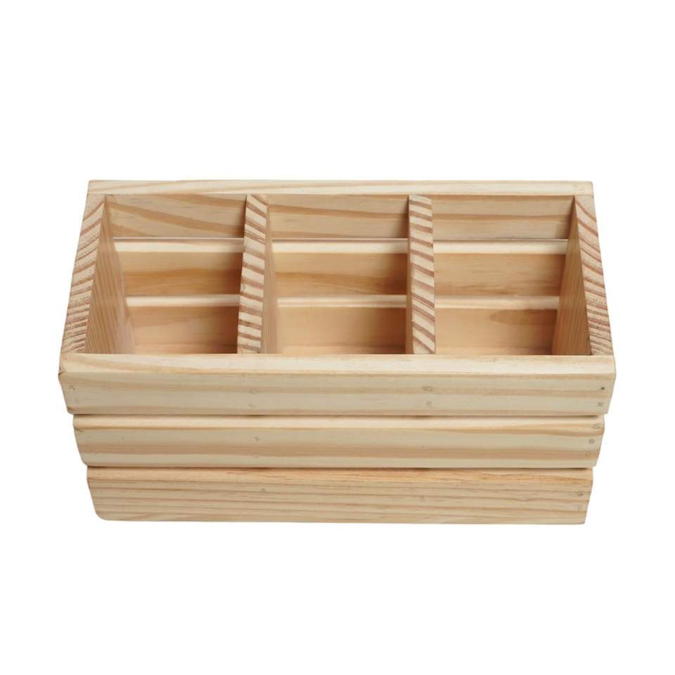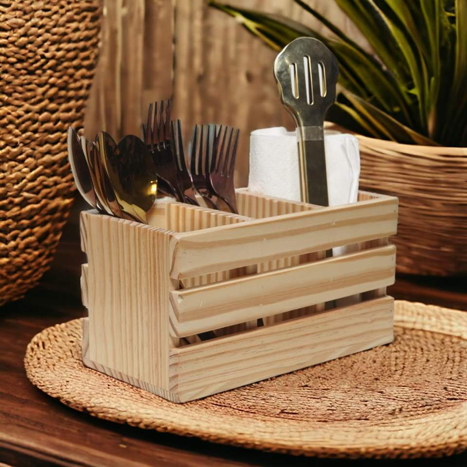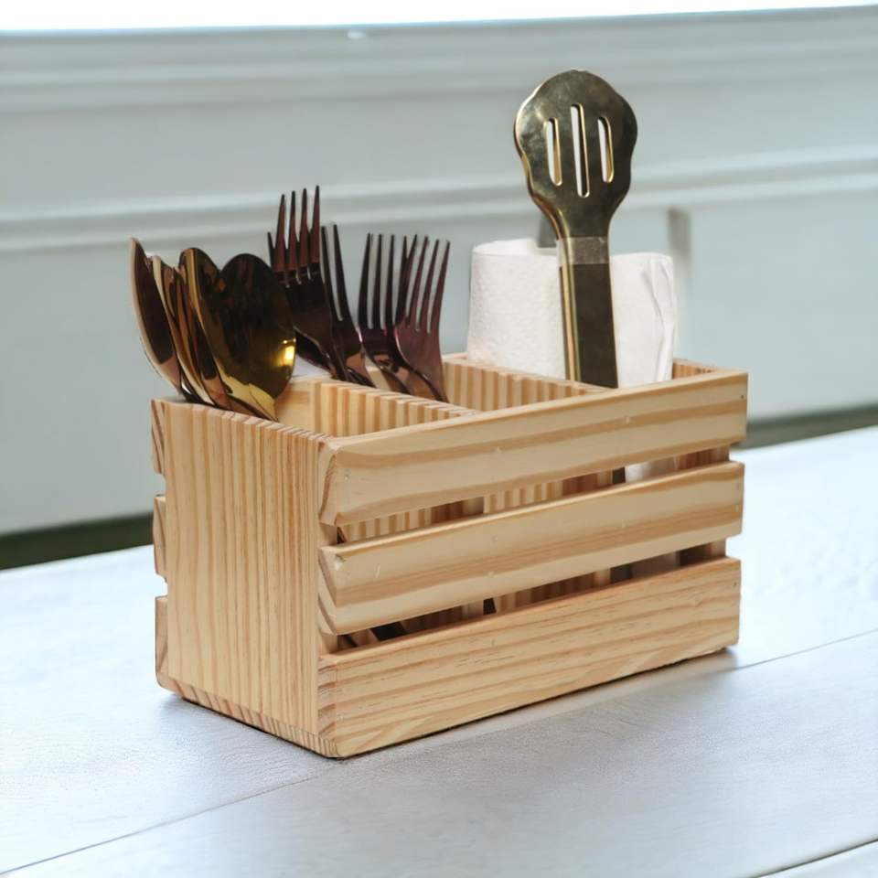Modern Natural Wooden Handmade Durable Cutlery Holder Multi Compartment Table Organizer Slatted Design for Spoons Forks Knives