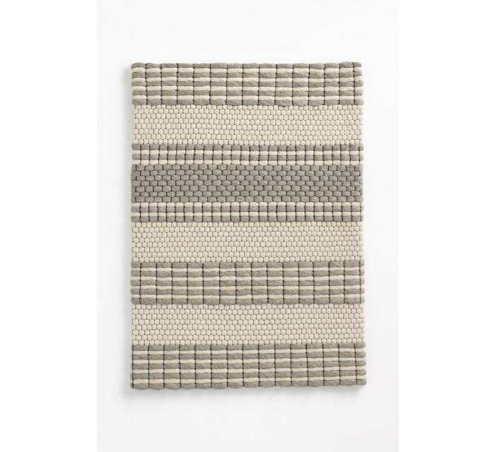 Tapis moderne en laine noué à la main, texturé et rayé, en ivoire et gris, tapis minimaliste en laine noué à la main