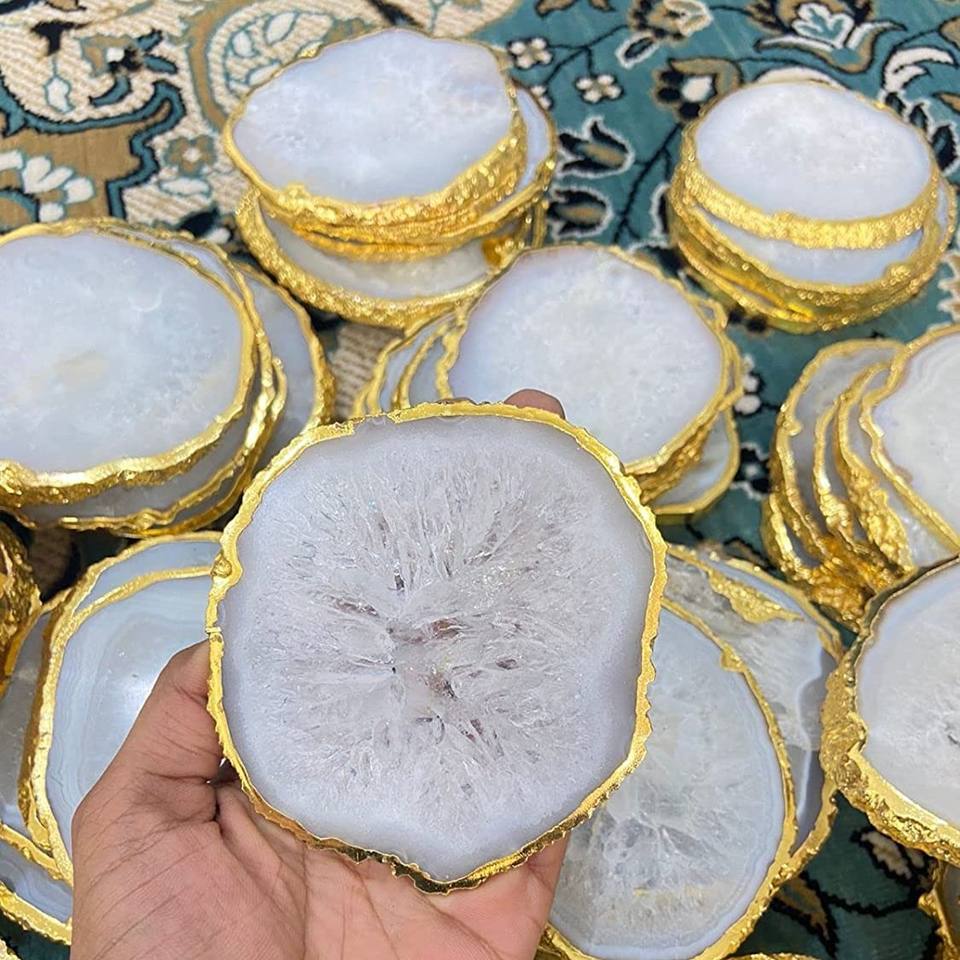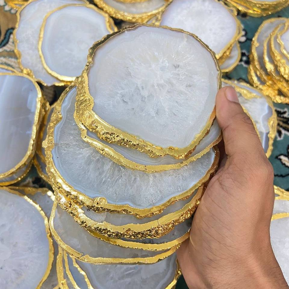 Dessous de verre rond de thé de motif floral fait à la main écologique en pierre d'agate de luxe pour la décoration intérieure et les cadeaux