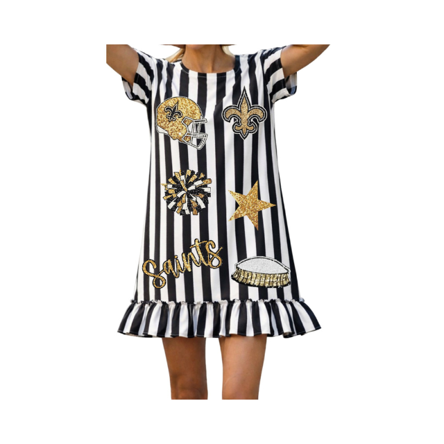 Nouvelle Robe Décontractée Noire à Paillettes Style Moderne, Taille Unique, Manches Courtes, Respirante, pour Femme, Idéale pour les Journées de Match