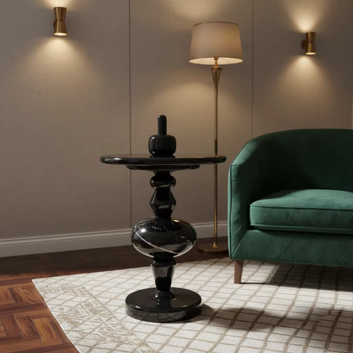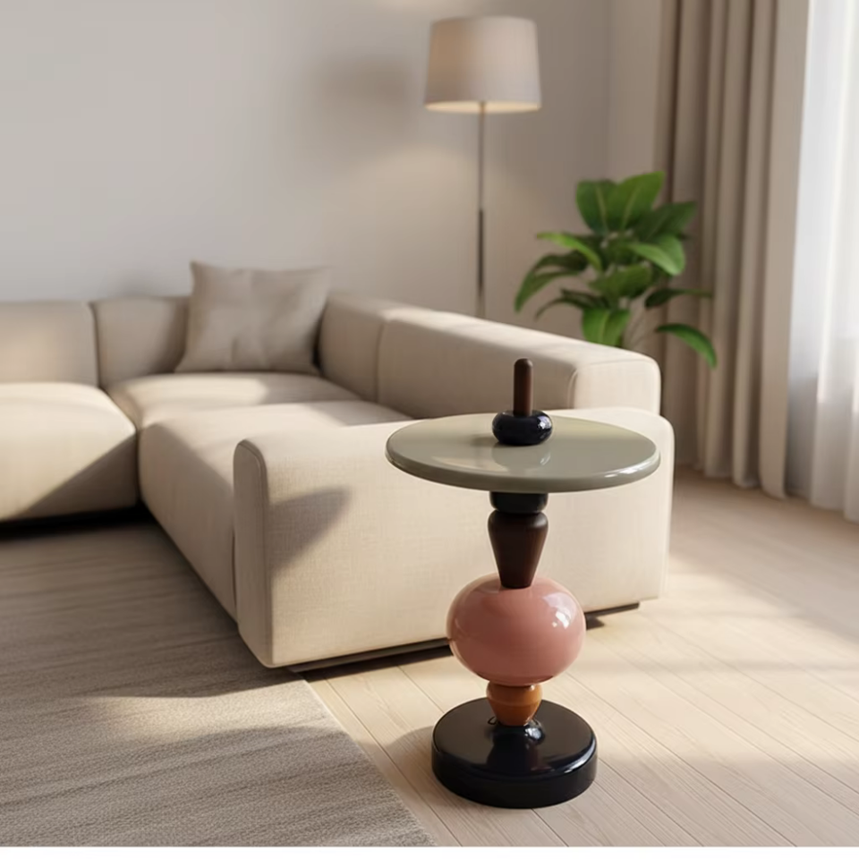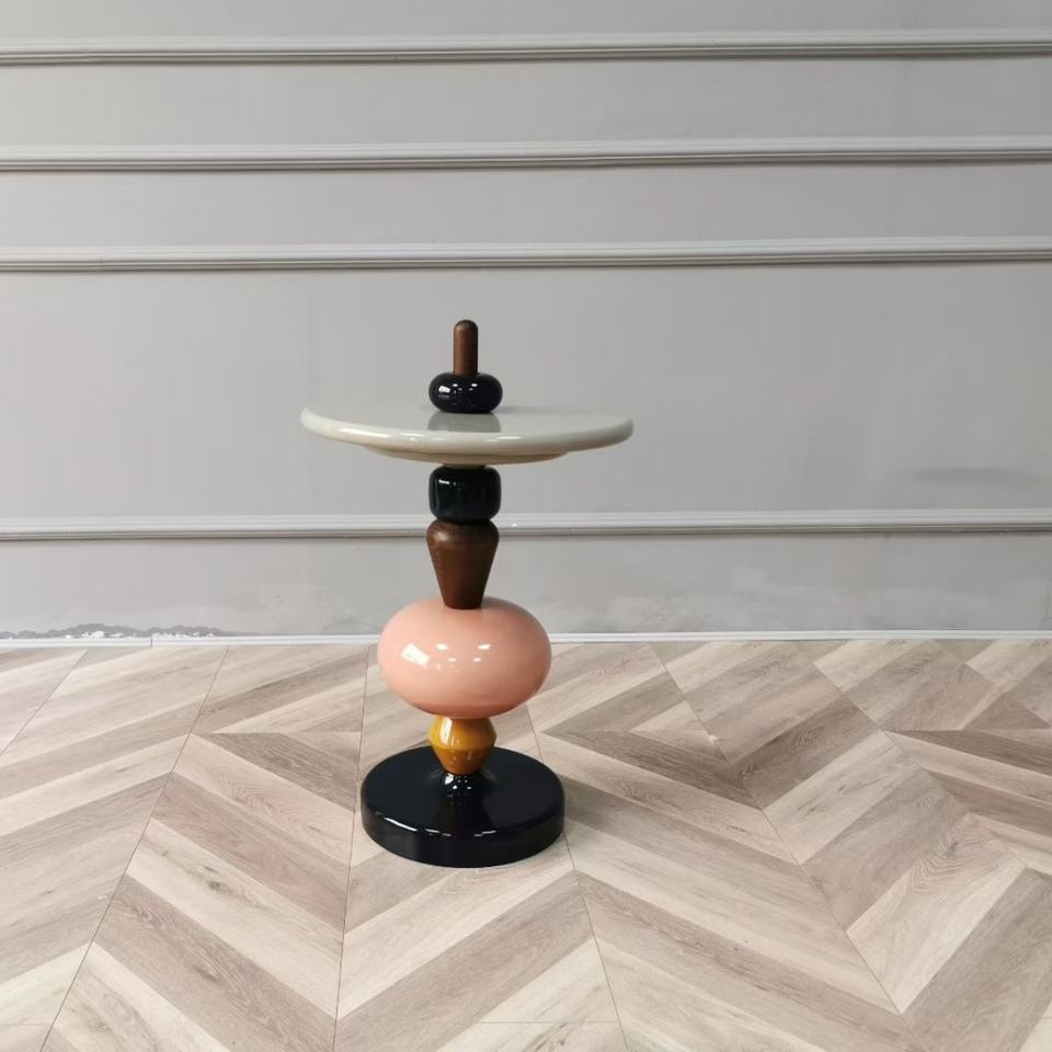 Table d'appoint de style nordique moderne avec des décorations en forme de hawtes confites | Table d'appoint ronde artistique multicolore pour un intérieur créatif