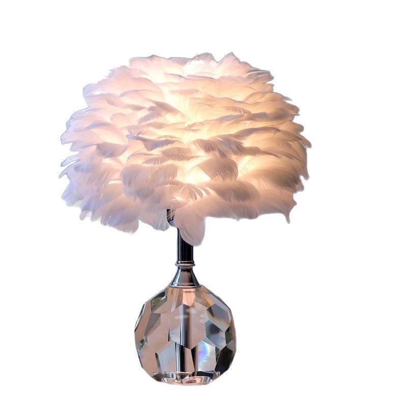 Lampe de table créative nordique moderne en plumes, lampe de chevet décorative romantique en cristal, lumière blanche chaude à intensité variable pour un style minimaliste