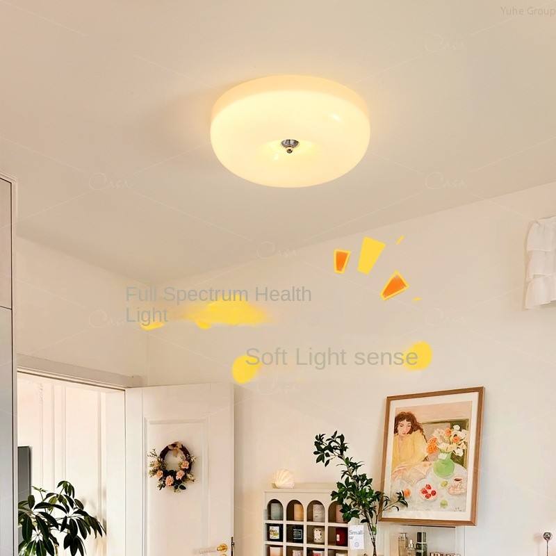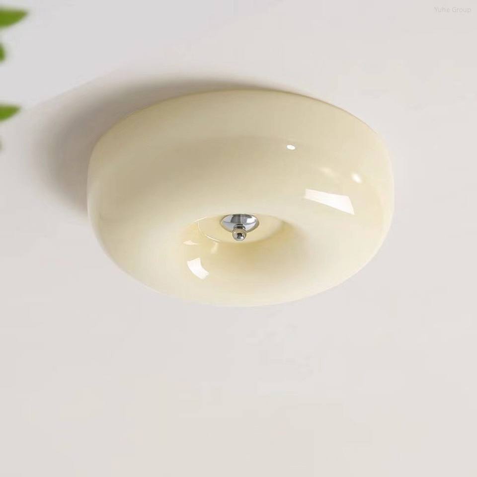 Lustre de plafond en verre nordique moderne avec télécommande pour salon, chambre à coucher, bureau, balcon, design simple crème