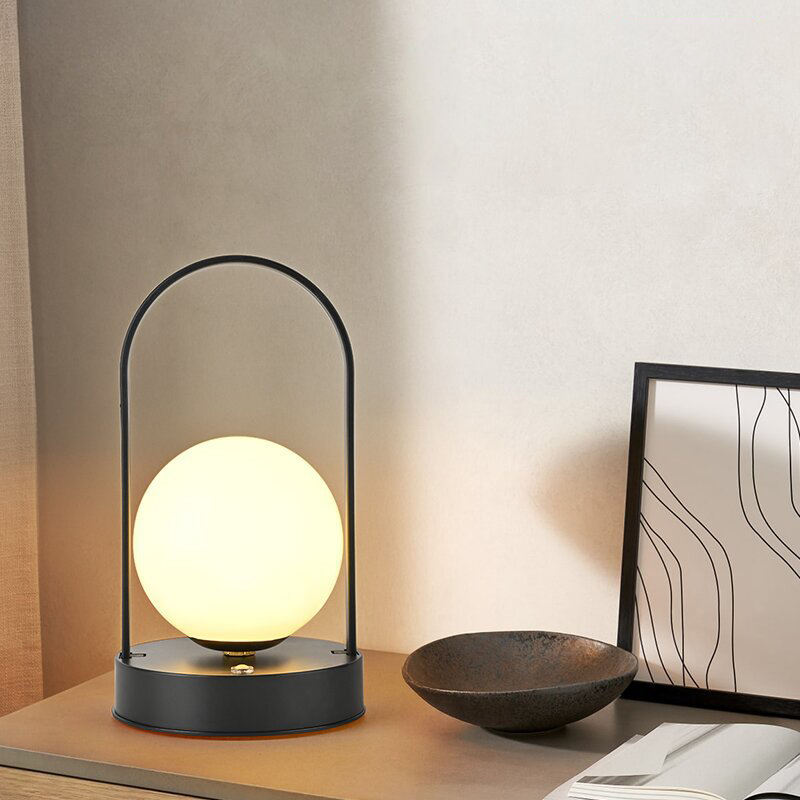 Lampe de table LED nordique moderne avec boule Lampe de bureau en ABS avec liseuse pour chambre et salon