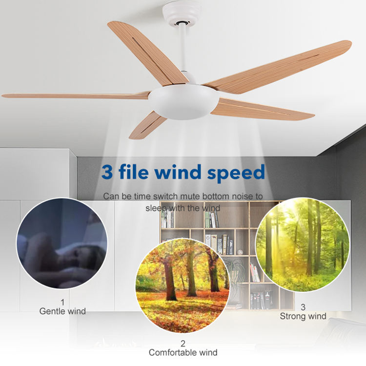 Ventilateur de plafond moderne à 5 lames, 52 pouces, Style nordique et minimaliste, avec télécommande, sans lumière, nouveauté 2020