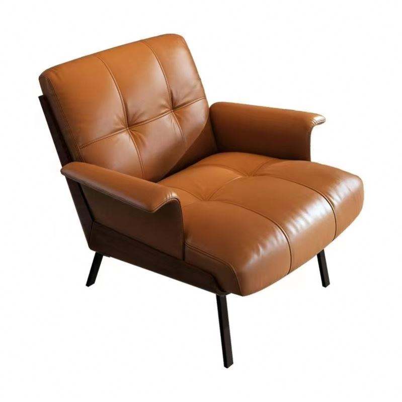 Chaise longue nordique moderne en cuir à bras unique Italie Style de chambre d'hôtel Meubles de salon décontractés Canapé-chaise à ossature en bois