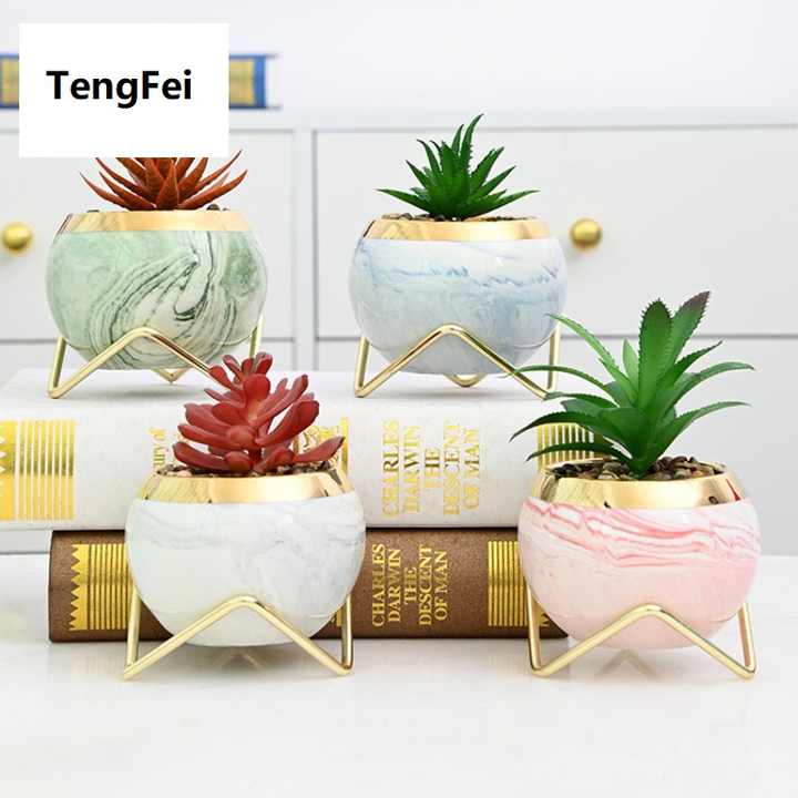 Pot de fleurs sphérique en céramique de style nordique moderne, émaillé, pour plantes succulentes, avec technique d'impression par transfert d'eau sur fer