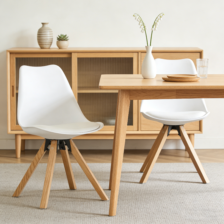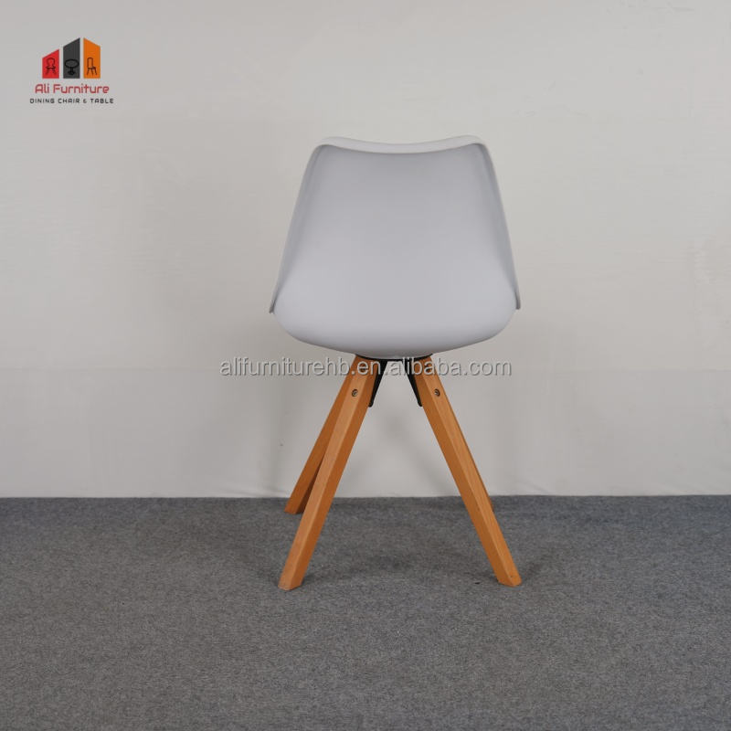 Chaise de salle à manger de style nordique moderne en PP blanc avec pieds en bois de hêtre, profil minimaliste élégant pour le bureau et la restauration