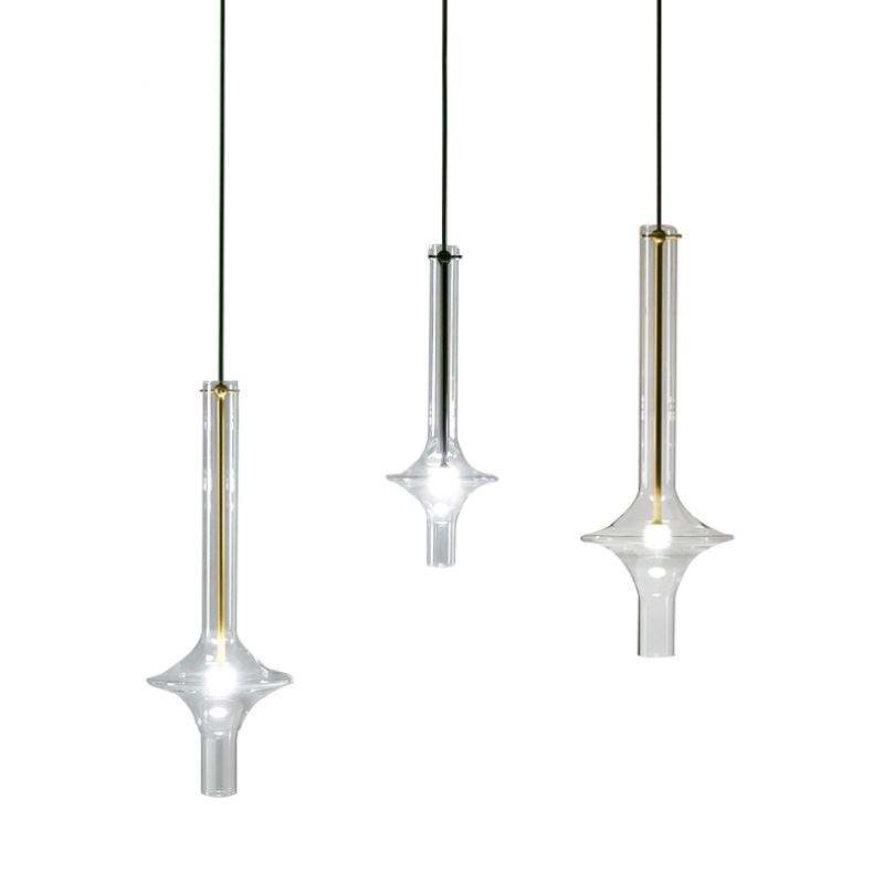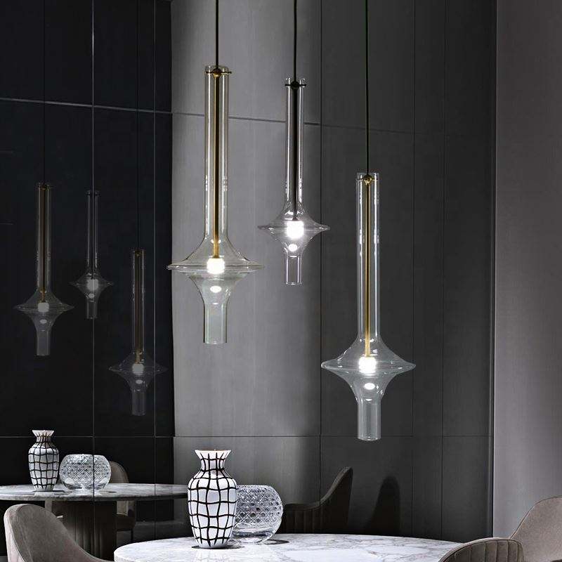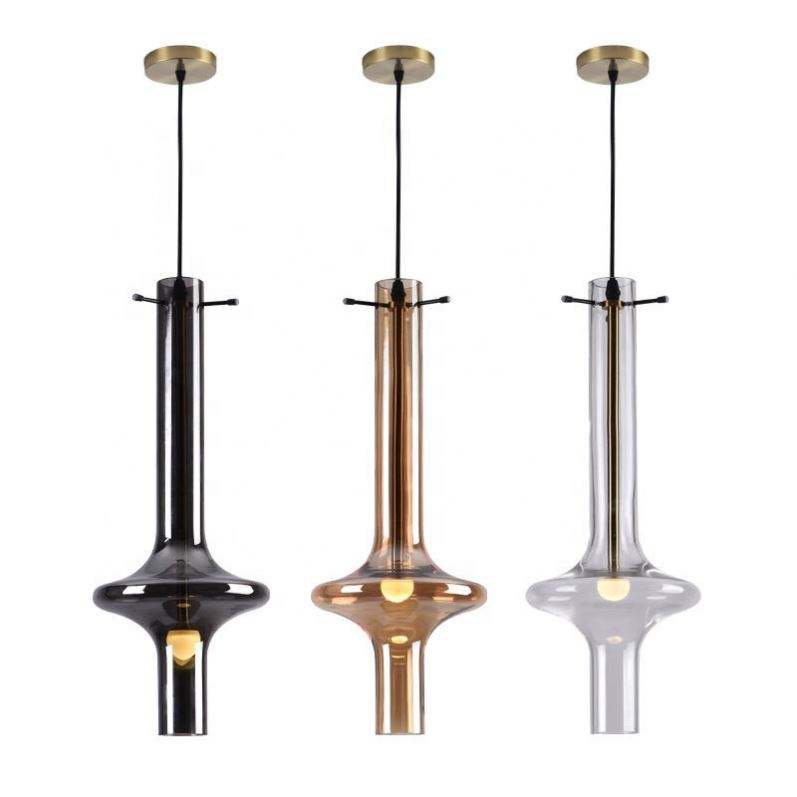 Luminaire suspendu de style nordique moderne, tube long, loft, cuisine, chambre à coucher, luminaire suspendu, verre gris fumé, acier, pour hôtels