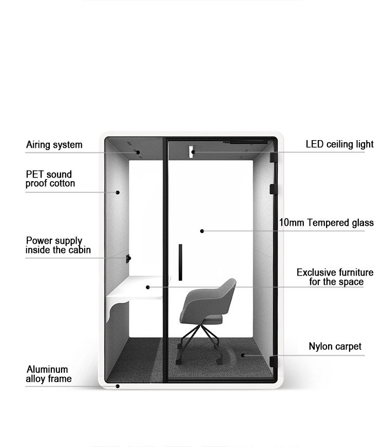 Cabine de bureau privée modulaire pré-assemblée insonorisée moderne OEM/ODM pour hôtels, salons, centres commerciaux-Réunion téléphonique acoustique