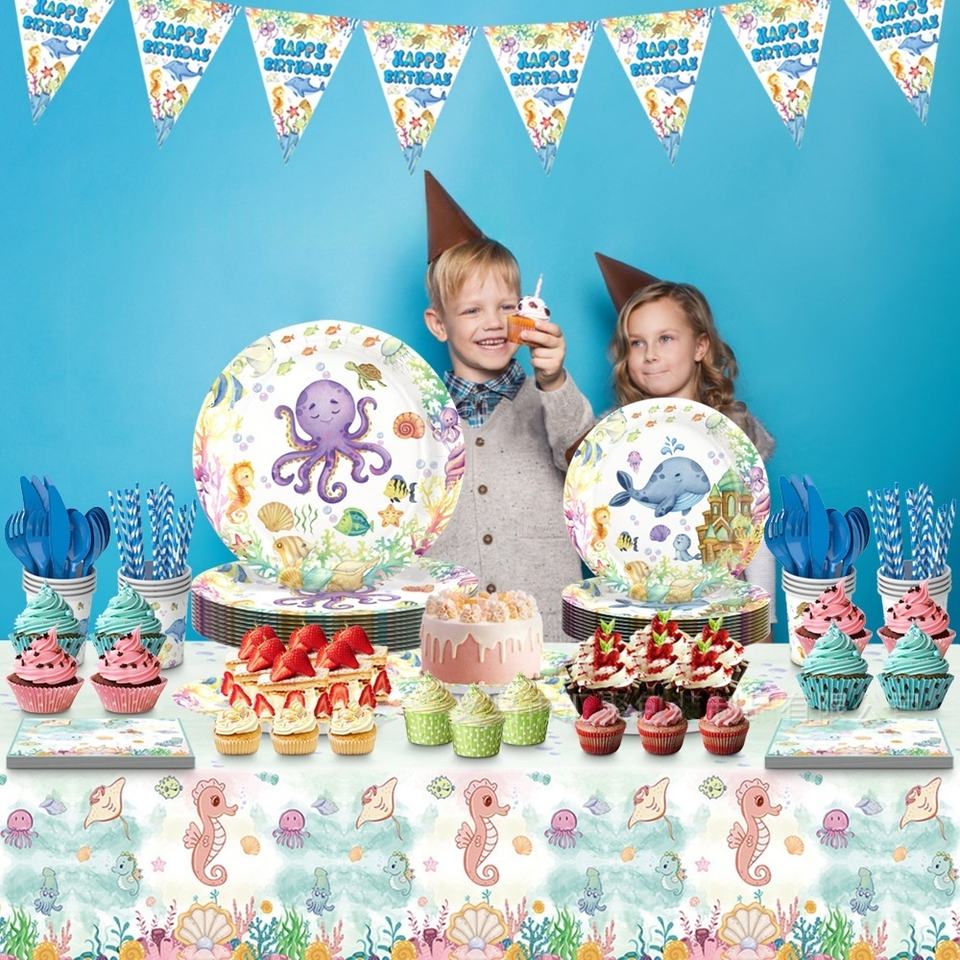 Vaisselle jetable sur le thème du monde sous-marin de l'océan moderne Fournitures de fête d'anniversaire pour enfants, y compris assiette en papier