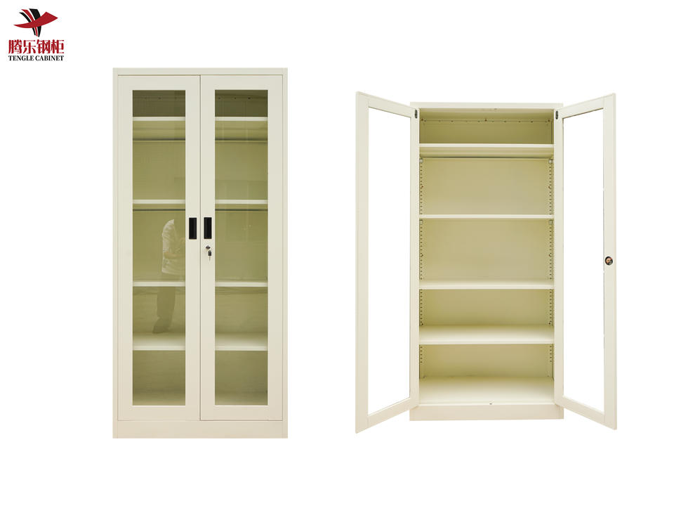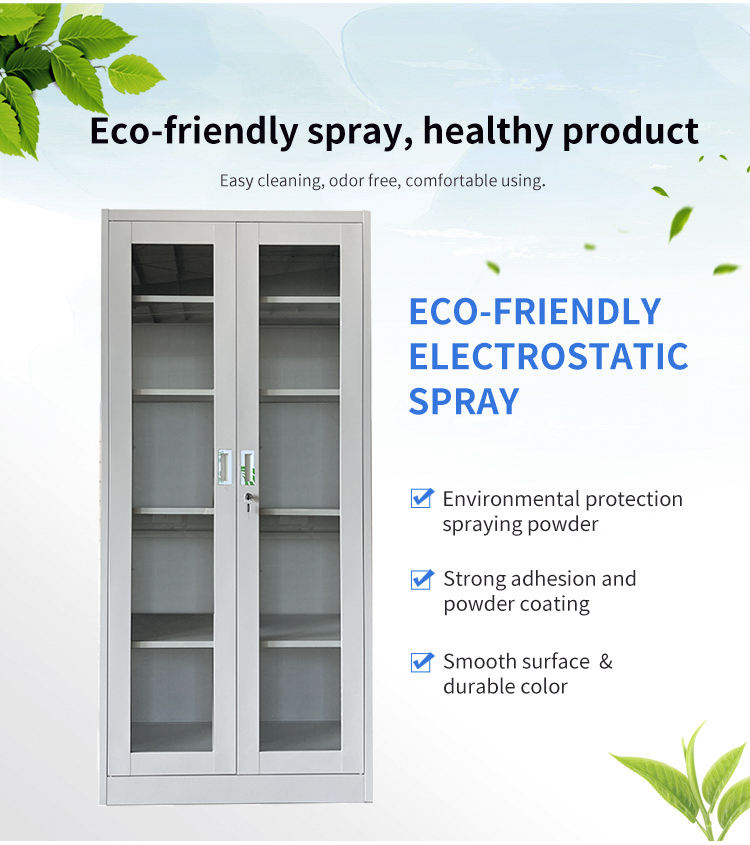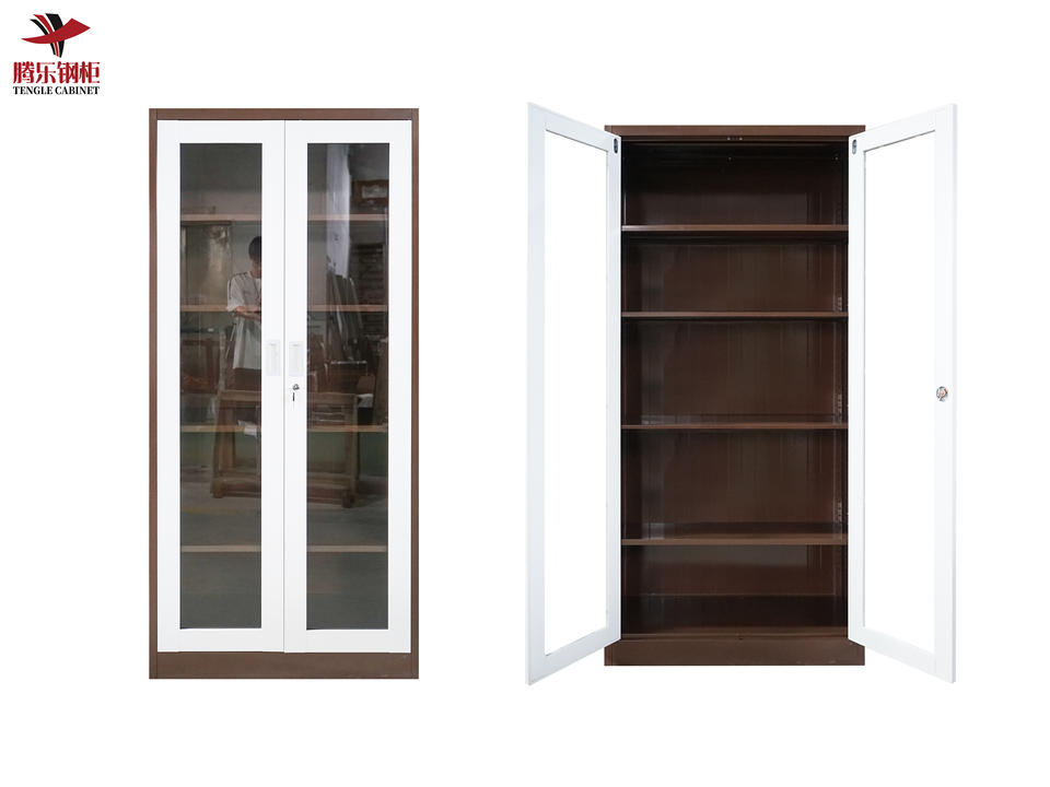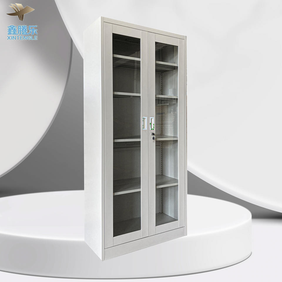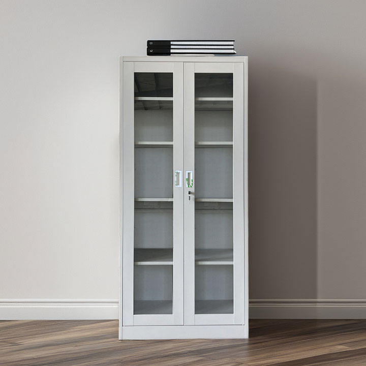 Armoire de Classement Moderne en Métal avec Encadrement Verre et Portes Vitrées, Idéale pour Bureau, École, Supermarché, Sous-sol ou Salle à Manger